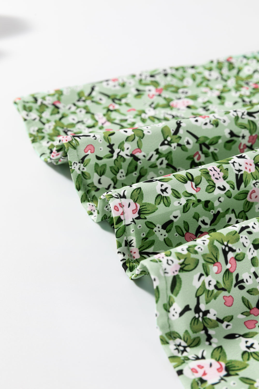 Green Boho Floral V Neck Wrap Short Sleeve Blouse