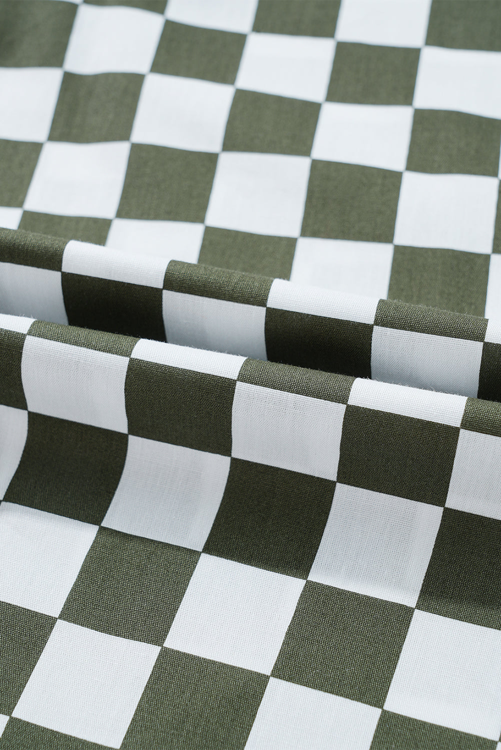 Green Checkerboard Printed Drop Shoulder Loose Casual Shirt