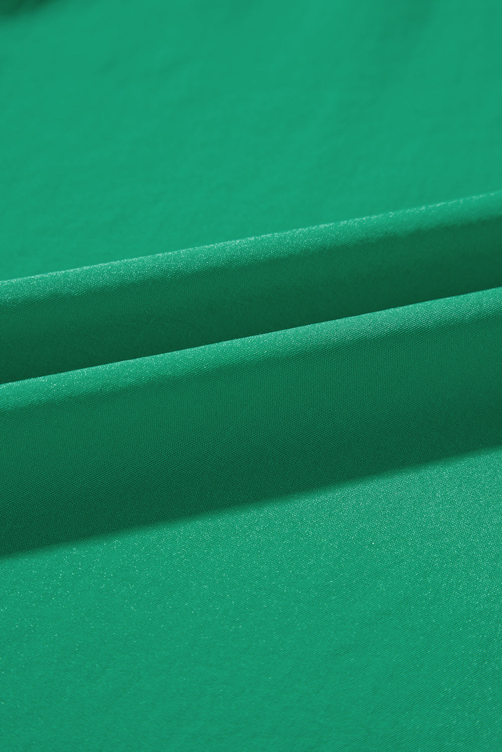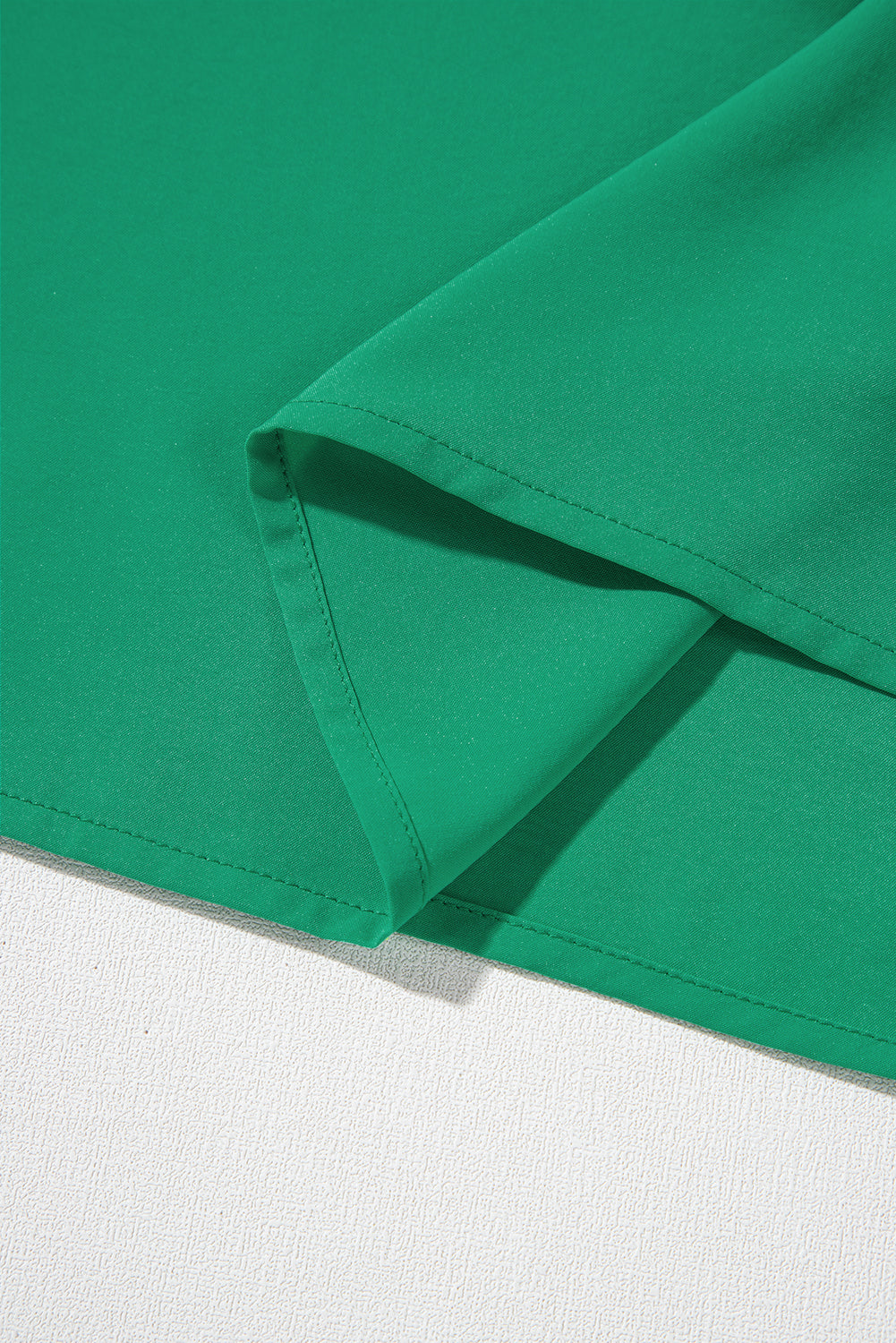 Green Contrast Floral Embroidered 3/4 Sleeve Notched V Neck Elegant Blouse