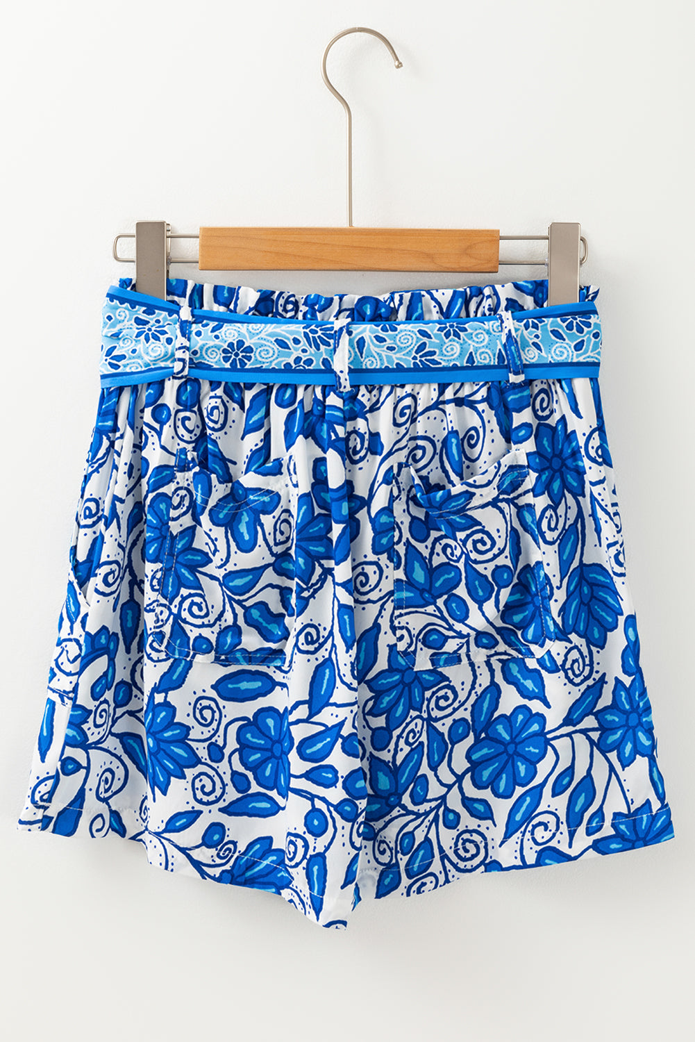 Green Floral Print Pocketed Front Knot High Waist Casual Shorts