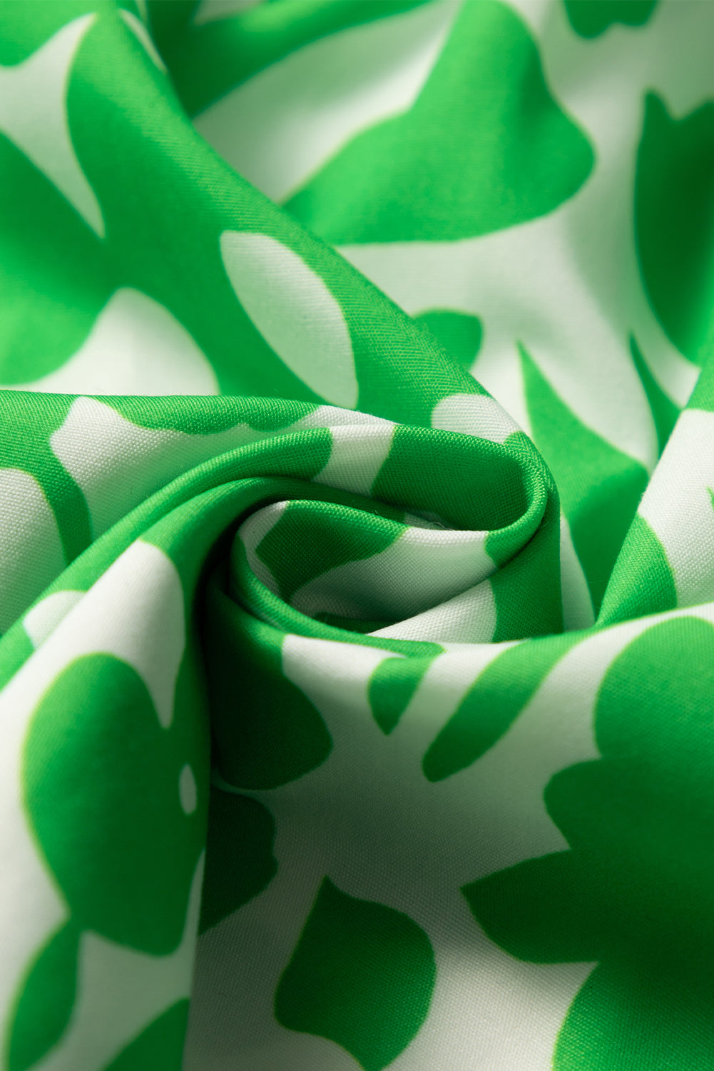Green Floral Print Puff Half Sleeve V Neck Babydoll Dress