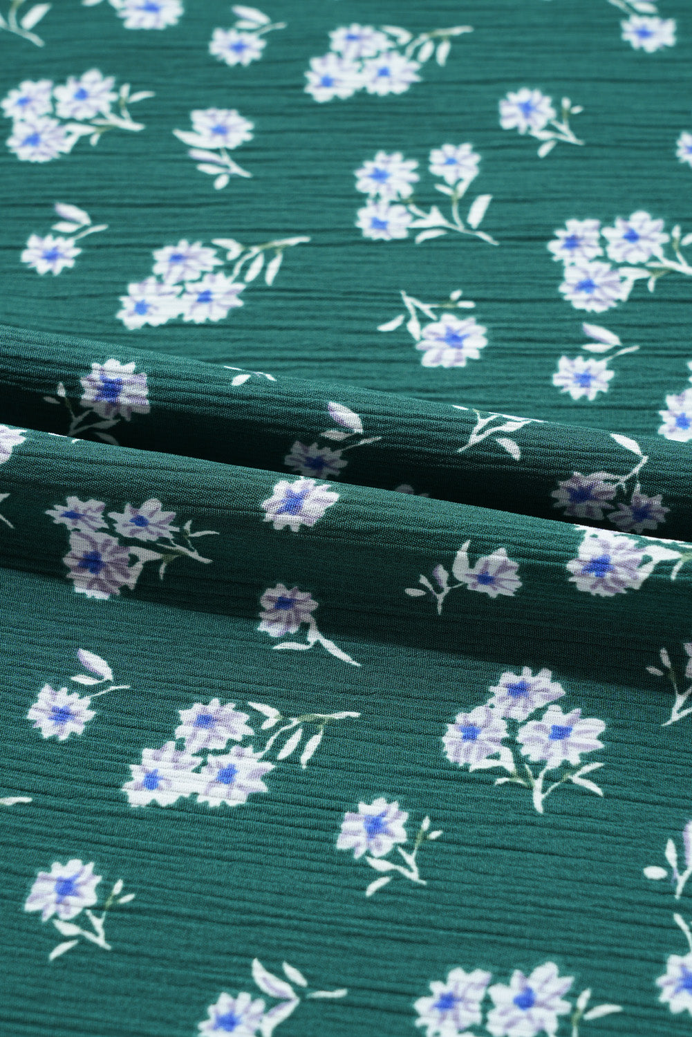 Green Floral Print Square Neck Ruffled Trim Plus Size Blouse