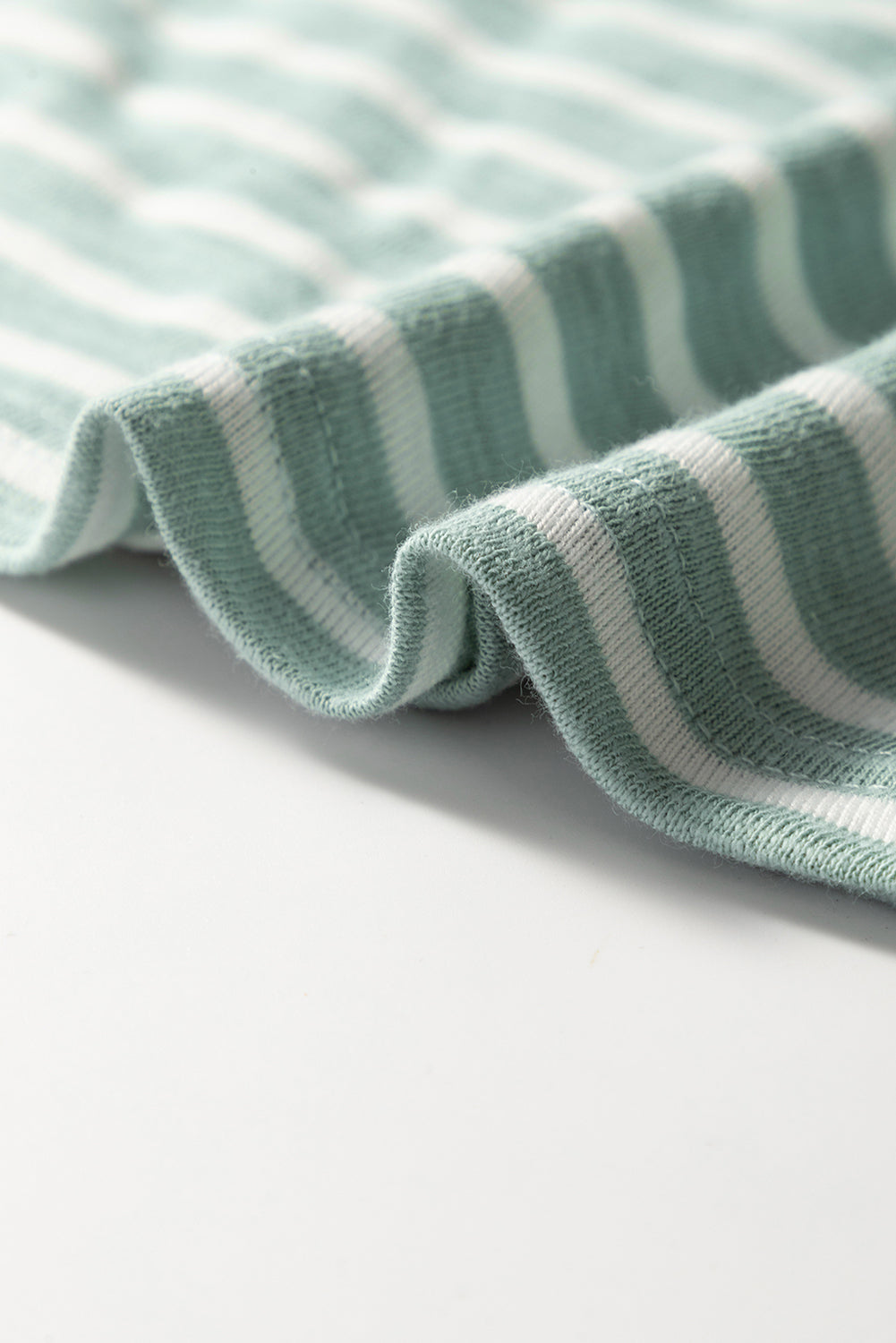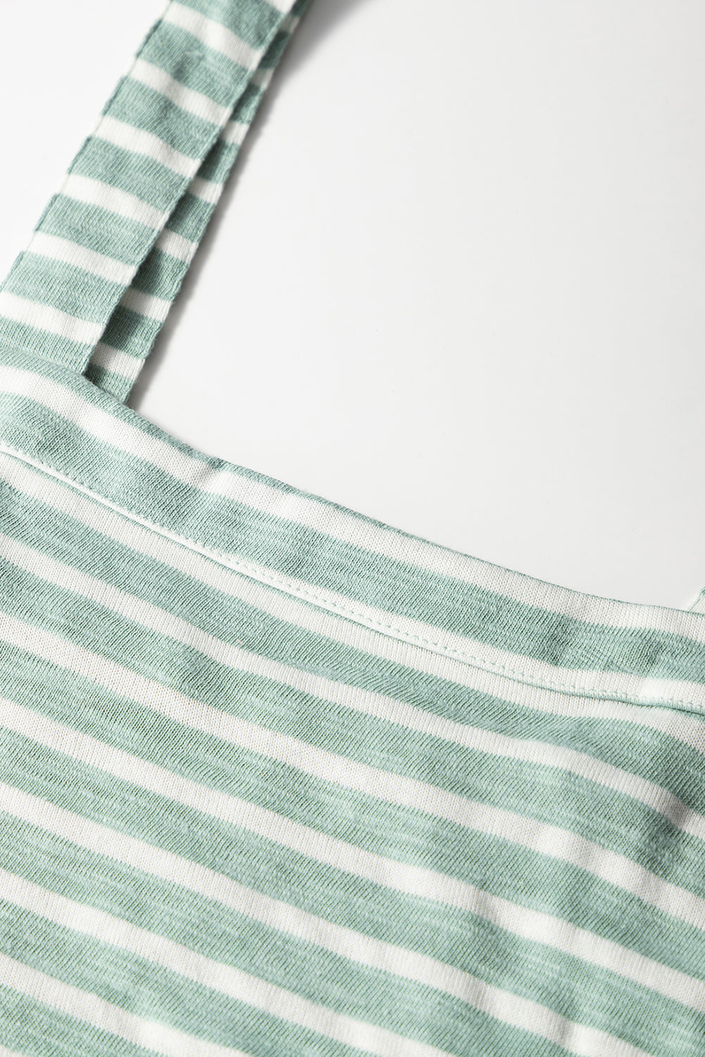 Green Stripe Shirred Frilled High Waist Sleeveless Loose Fit Maxi Dress