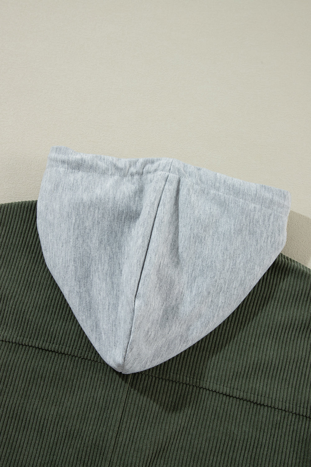 Jungle Green Oversized Corduroy Contrast Hooded Shacket