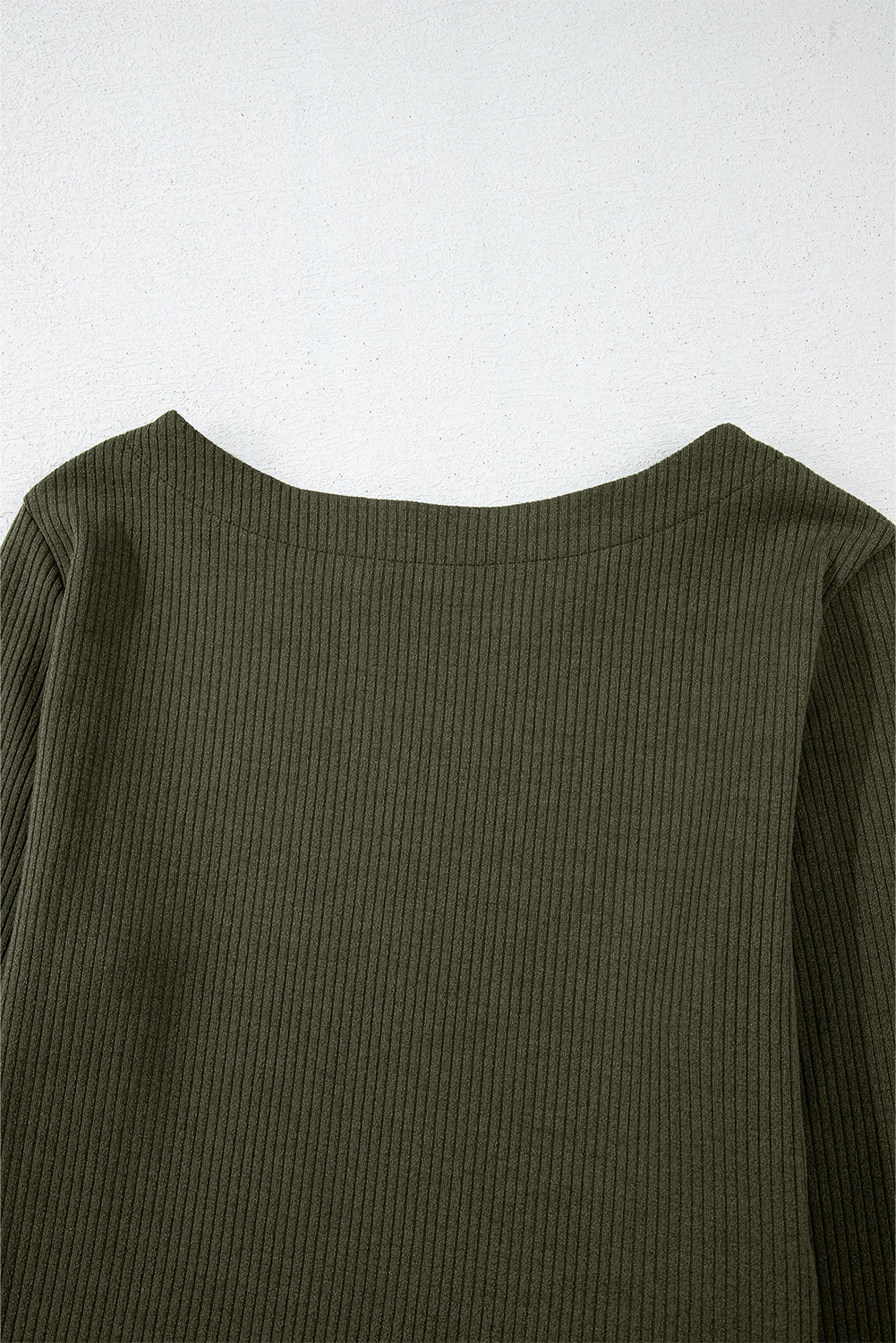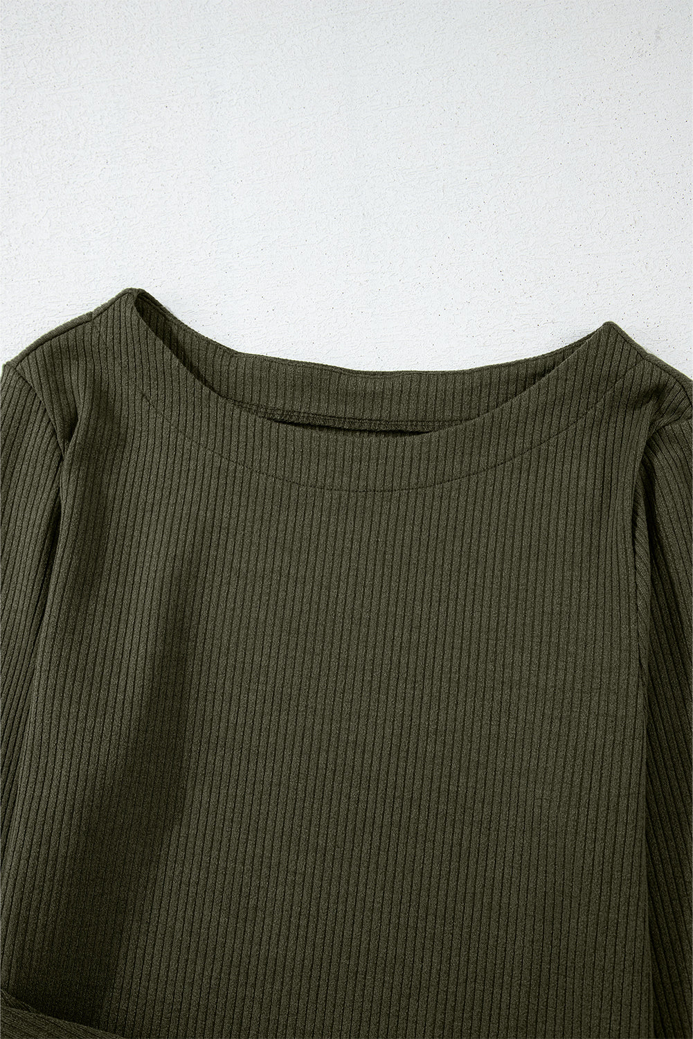 Jungle Green Ribbed Side Slit Ruched Slim Fit Long Sleeve Mini Dress