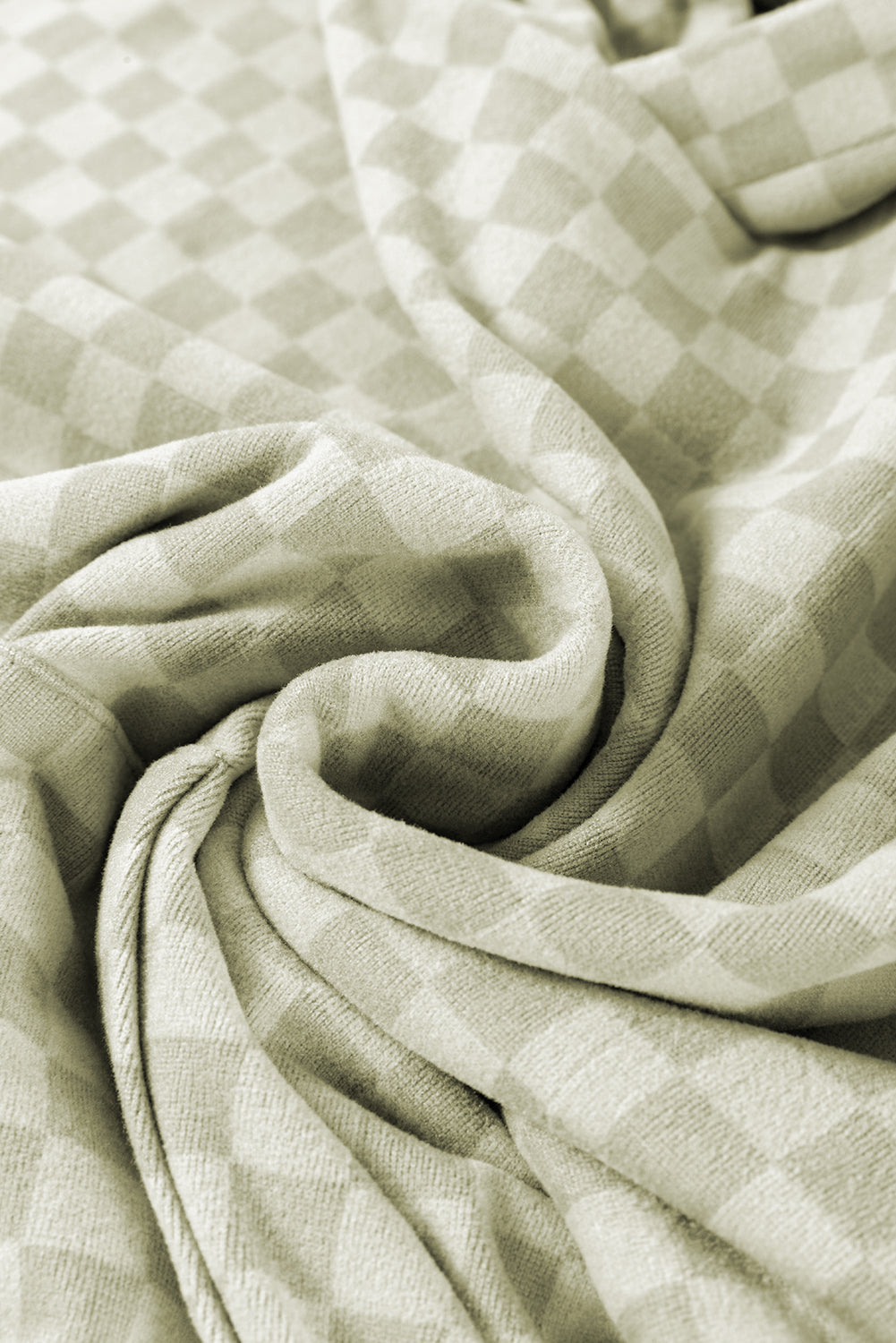 Khaki Checkered Print Kangaroo Pocket Drawstring Hoodie