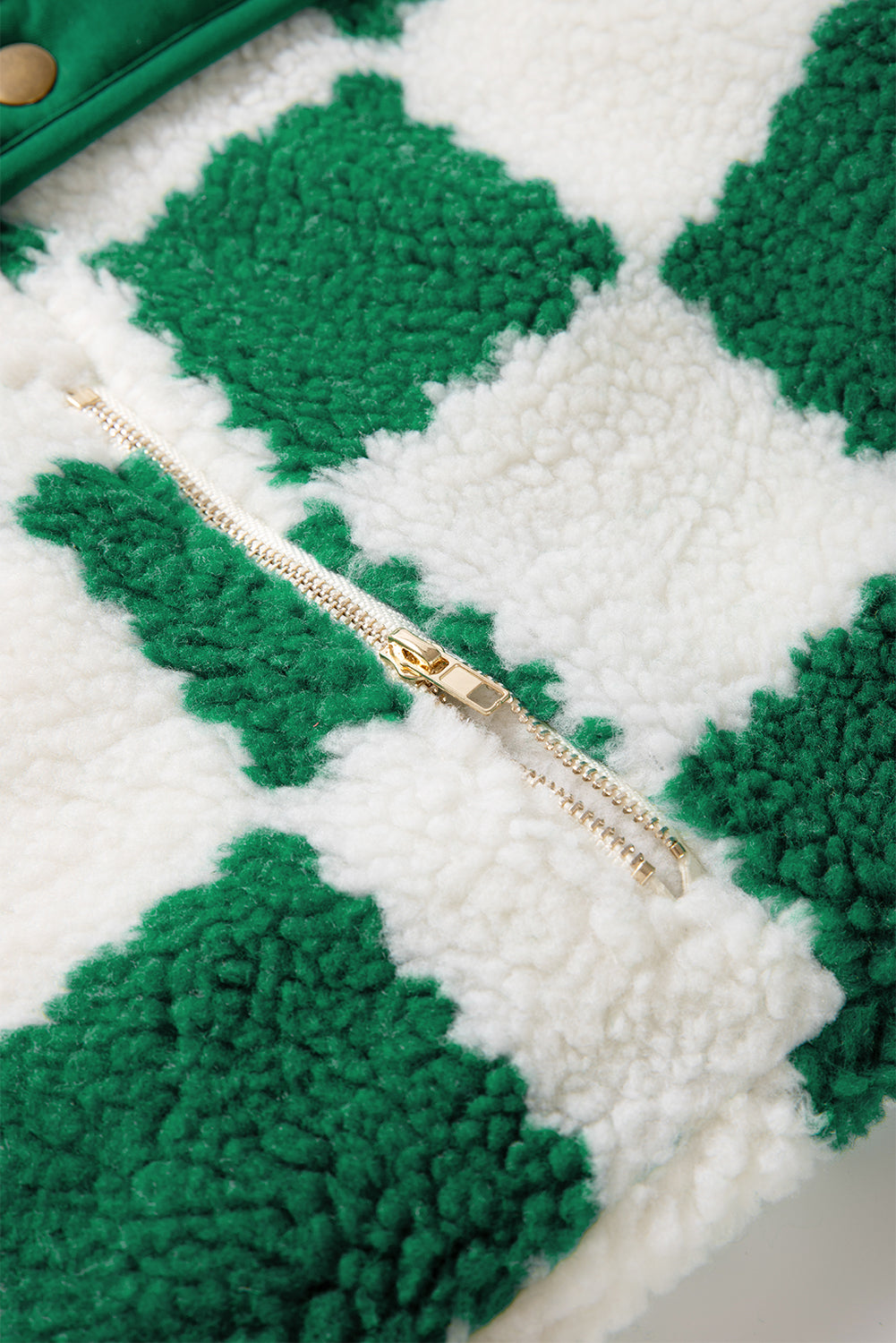 Lapis Checked Snap Button Sherpa Jacket