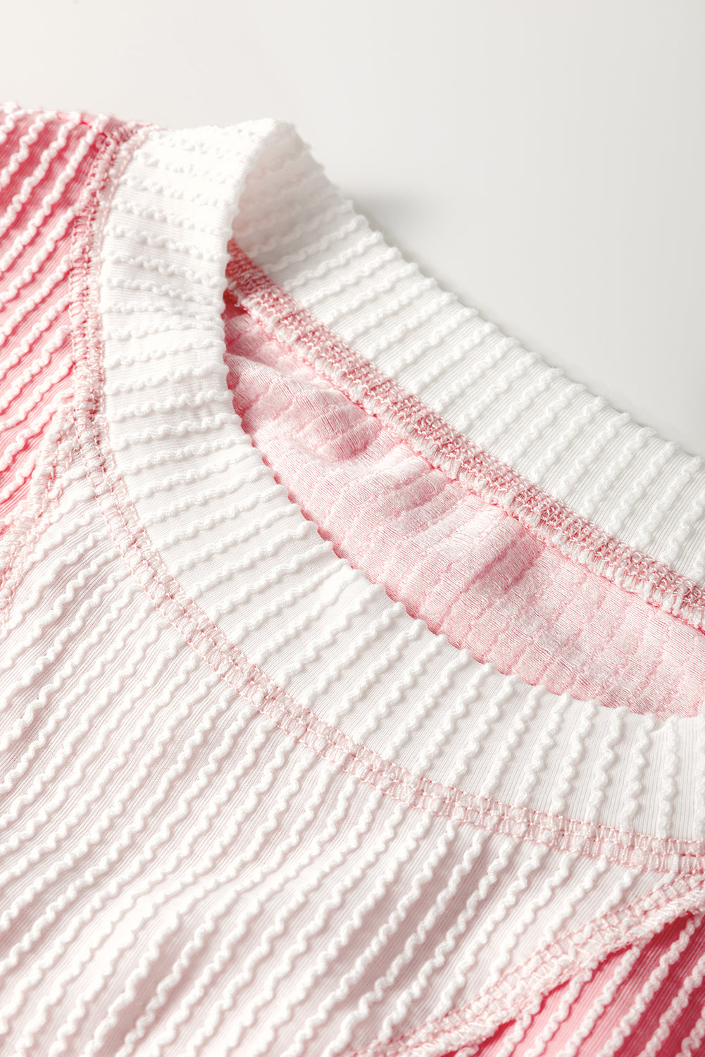 Light Blue Corded Colorblock Drop Shoulder Loose Top