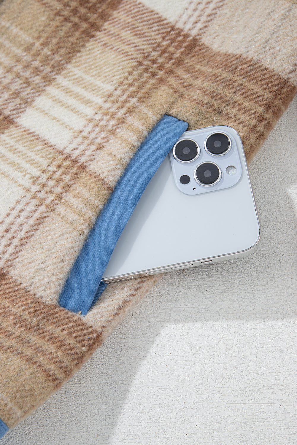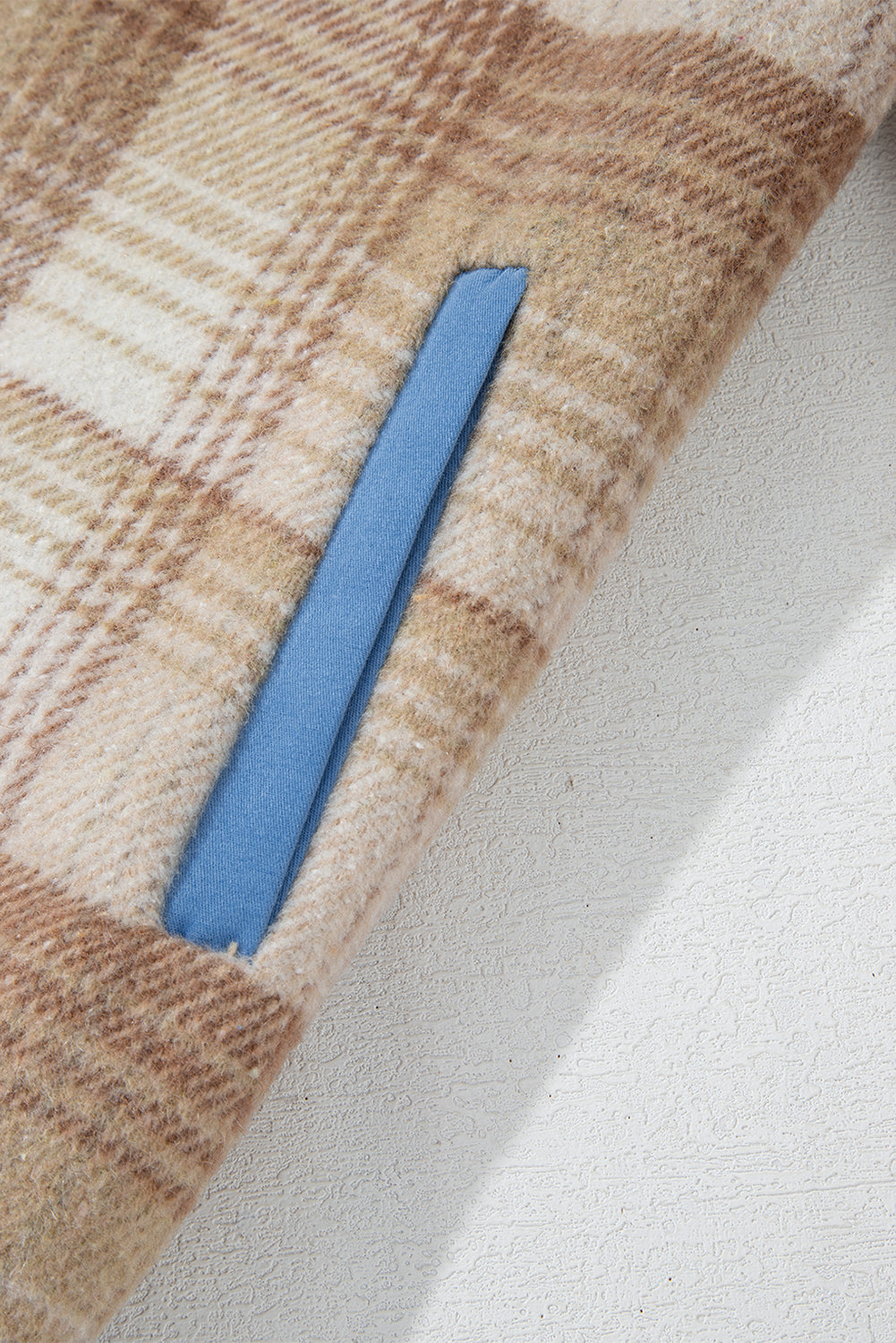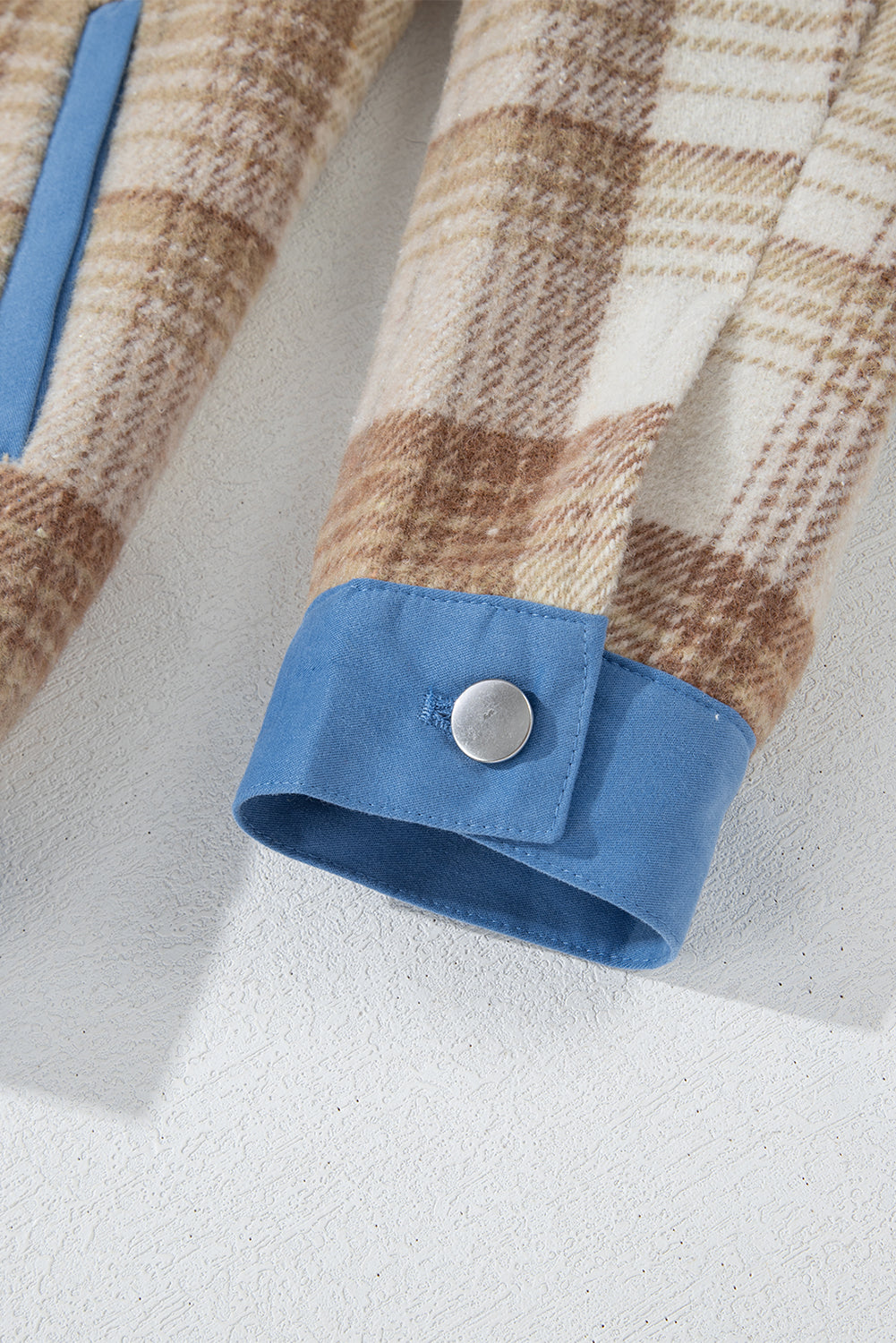 Light French Beige Plaid Patchwork Flap Detail Button Up Shacket