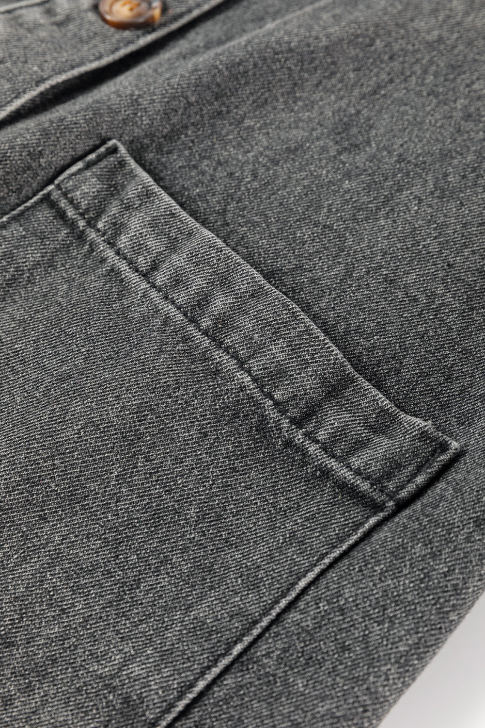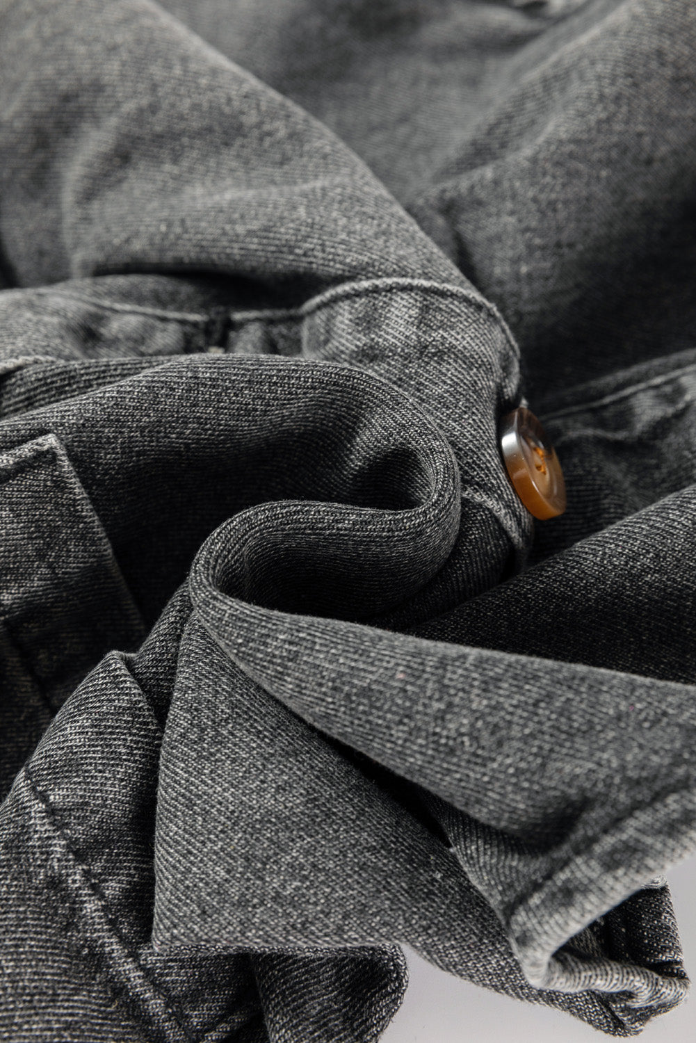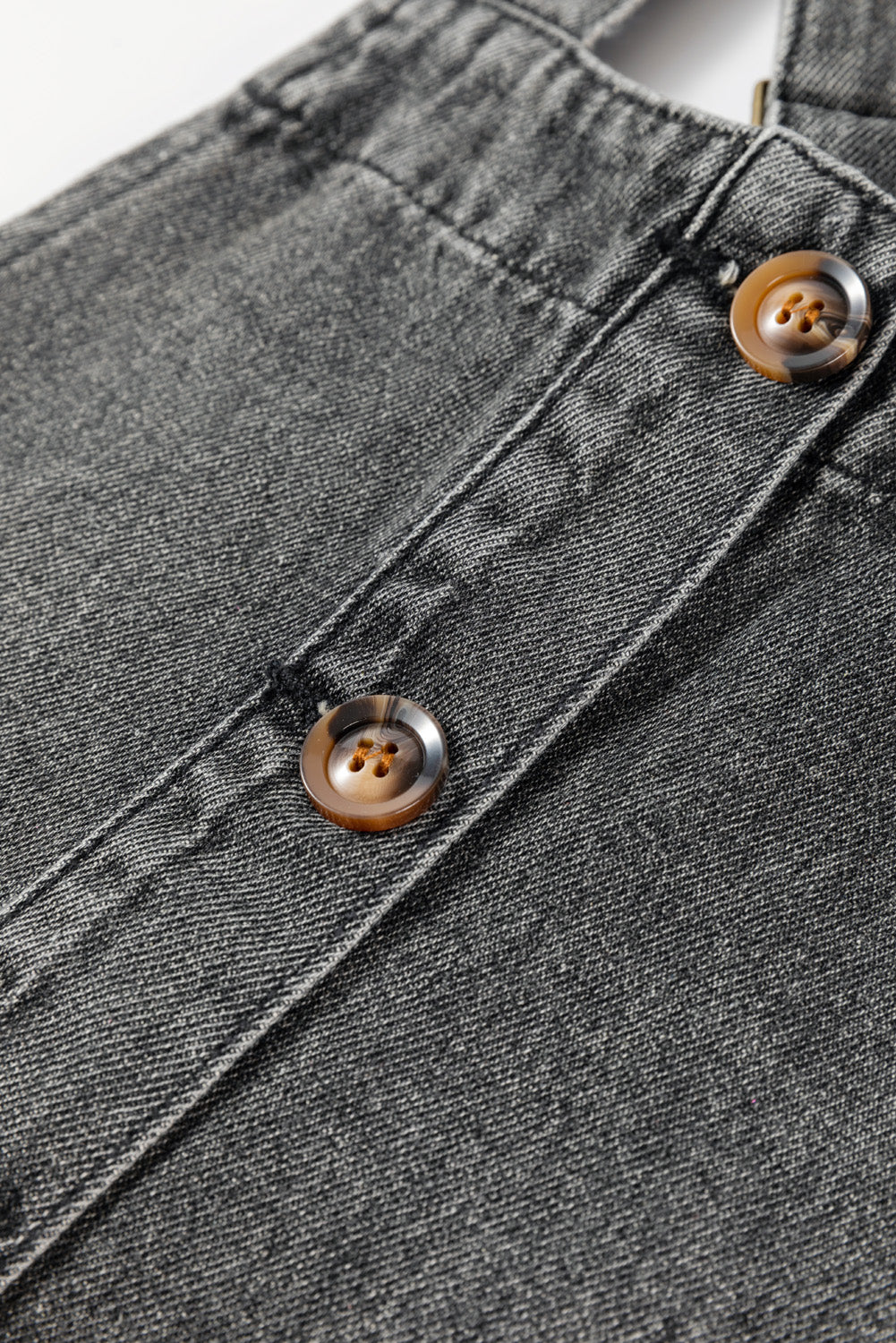 Medium Grey Wide Strap Button Front Pocketed Denim Mini Dress