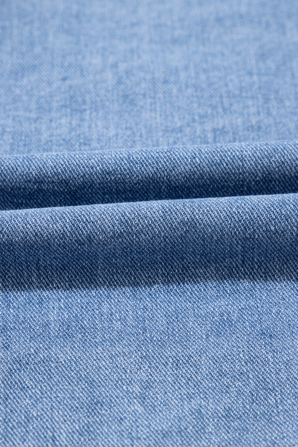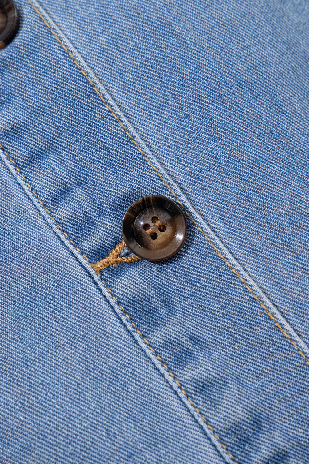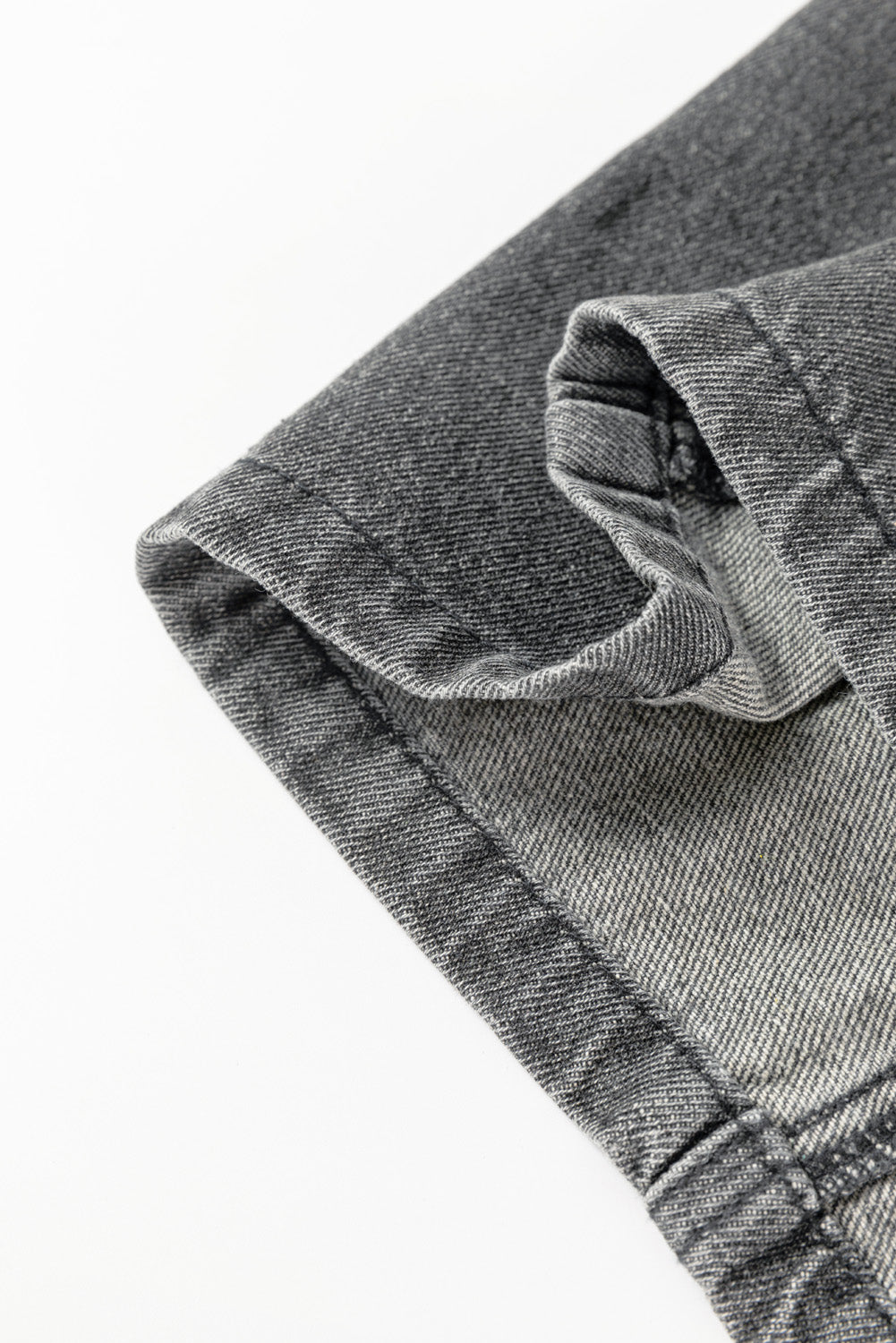 Medium Grey Wide Strap Button Front Pocketed Denim Mini Dress