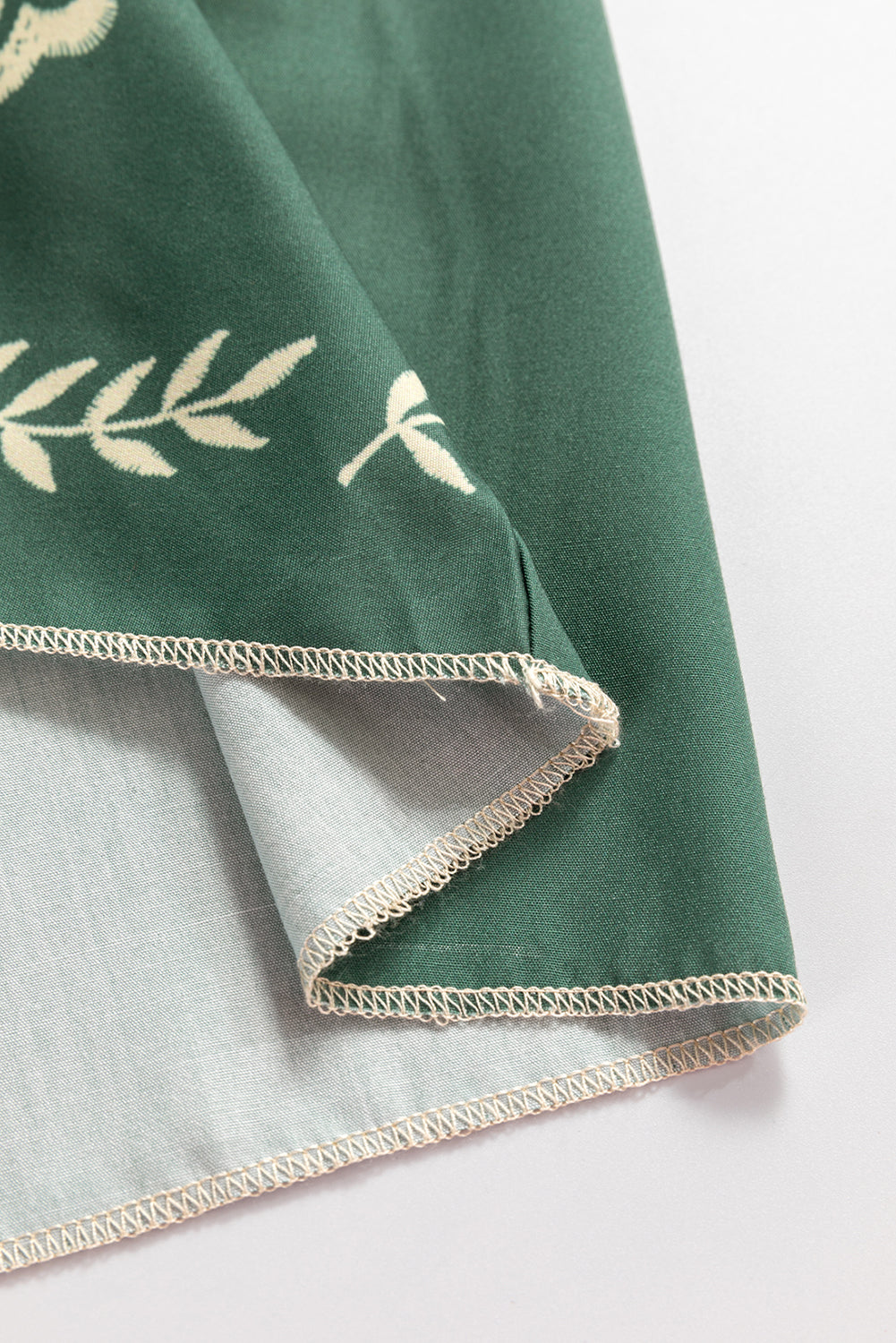 Mist Green Tie Neck Boho Floral Pattern Puff Sleeve Shift Dress