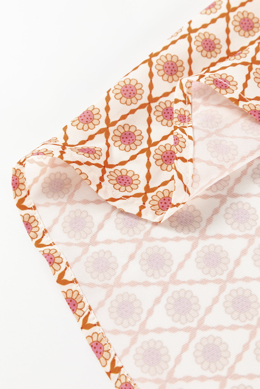 Multicolour Boho Floral Mixed Print Puff Sleeve Shirt