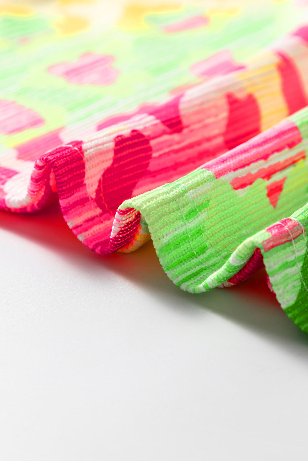 Multicolour Leopard Color Block Knitted Crewneck Plus Size T Shirt