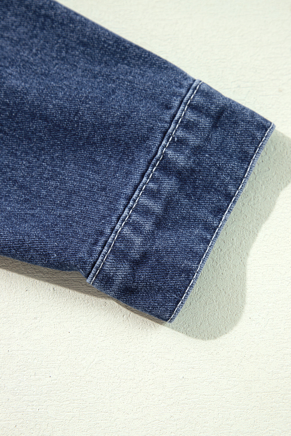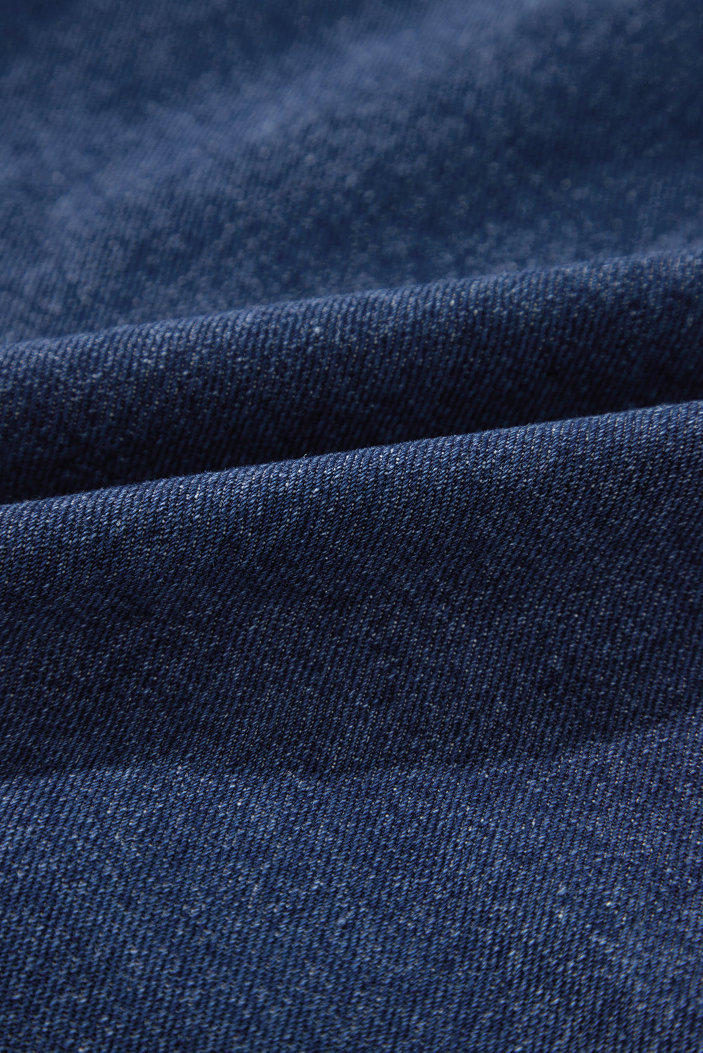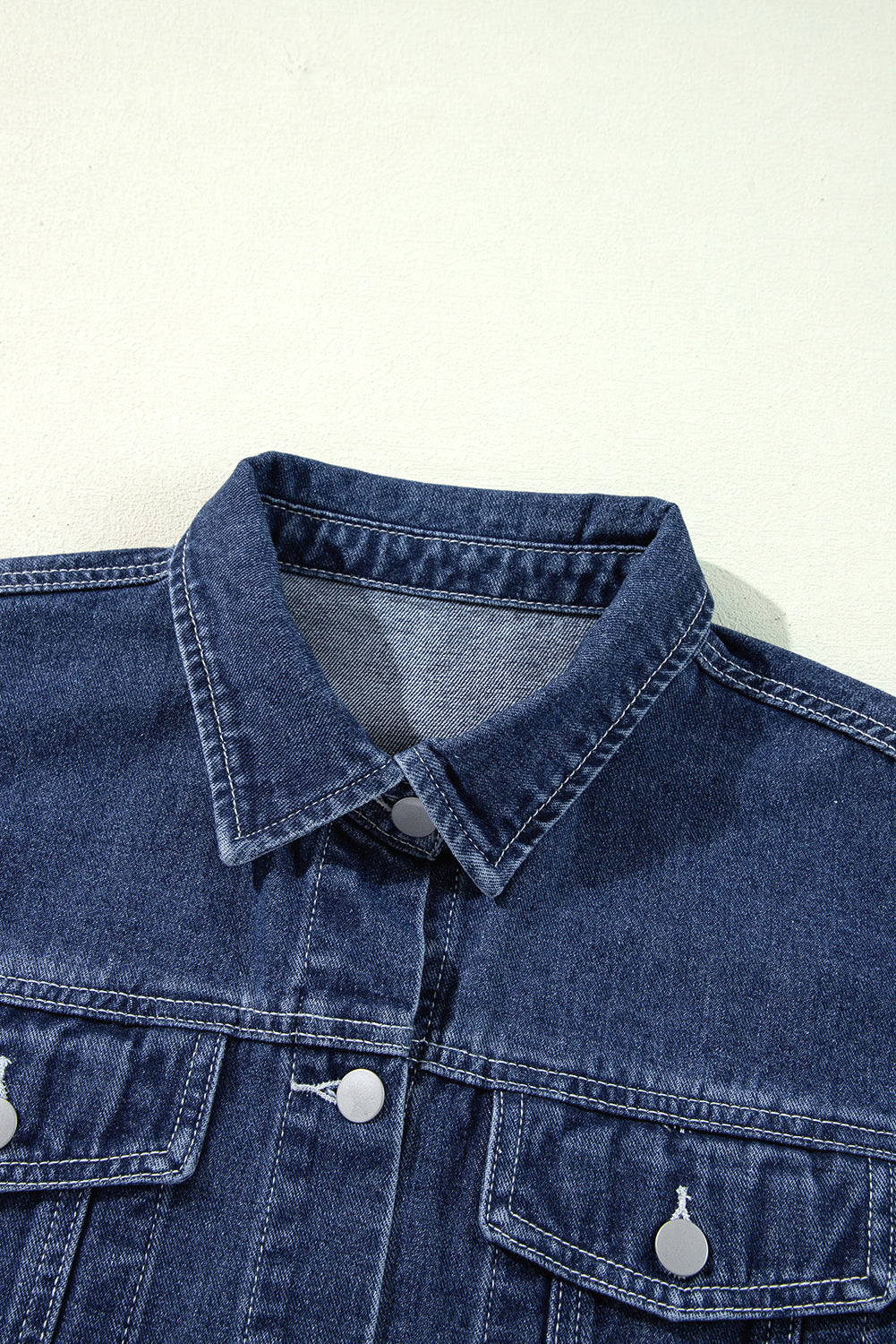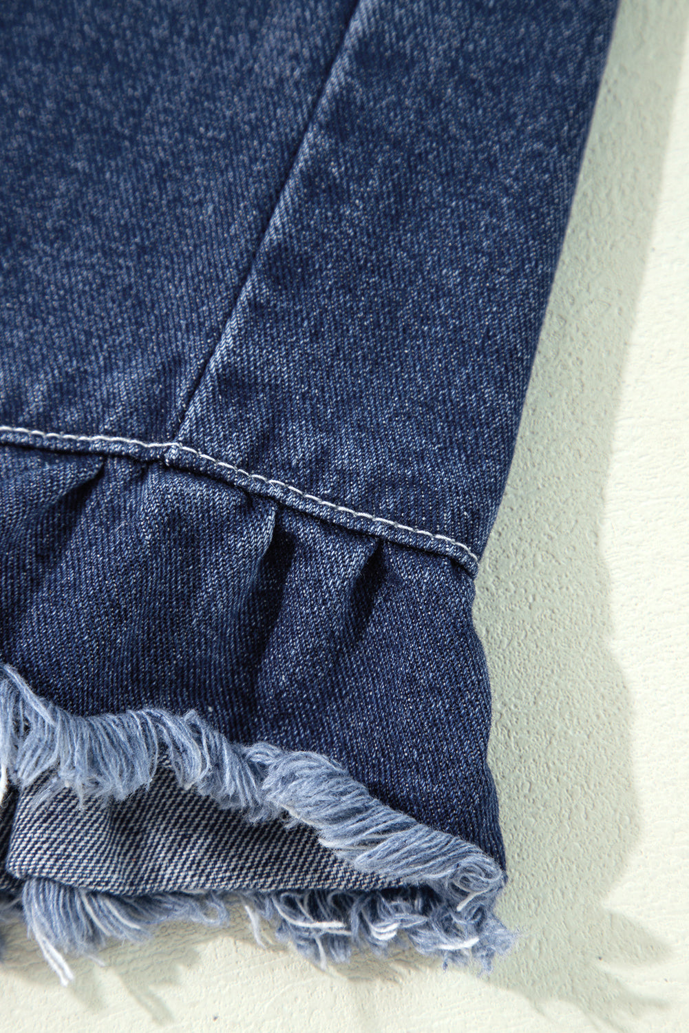 Navy Blue Ruffle Raw Hem Flap Pockets Denim Jacket