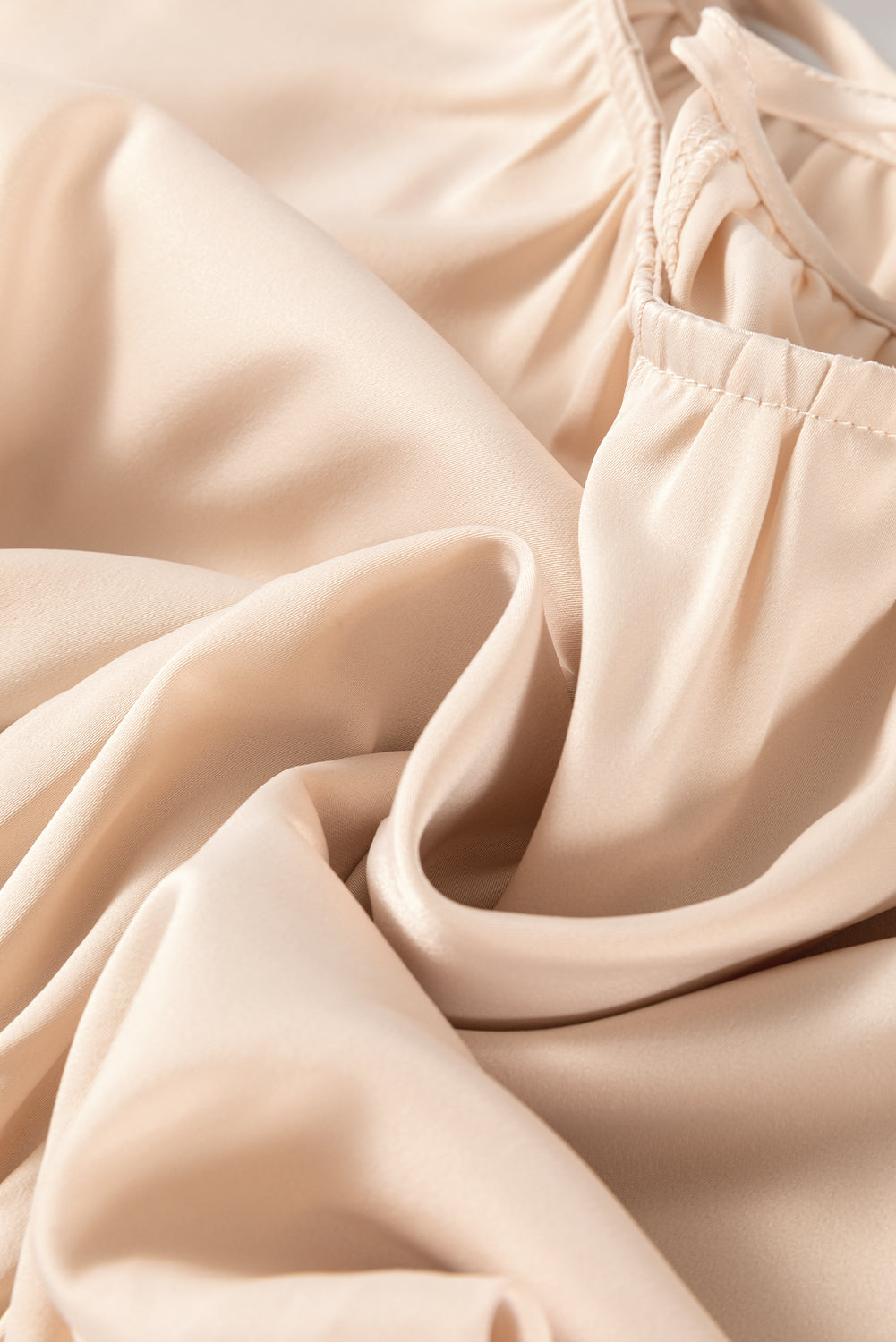 Oatmeal Lace-up Keyhole Back Ruffled Peplum Blouse