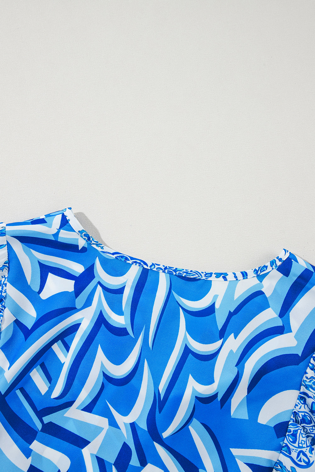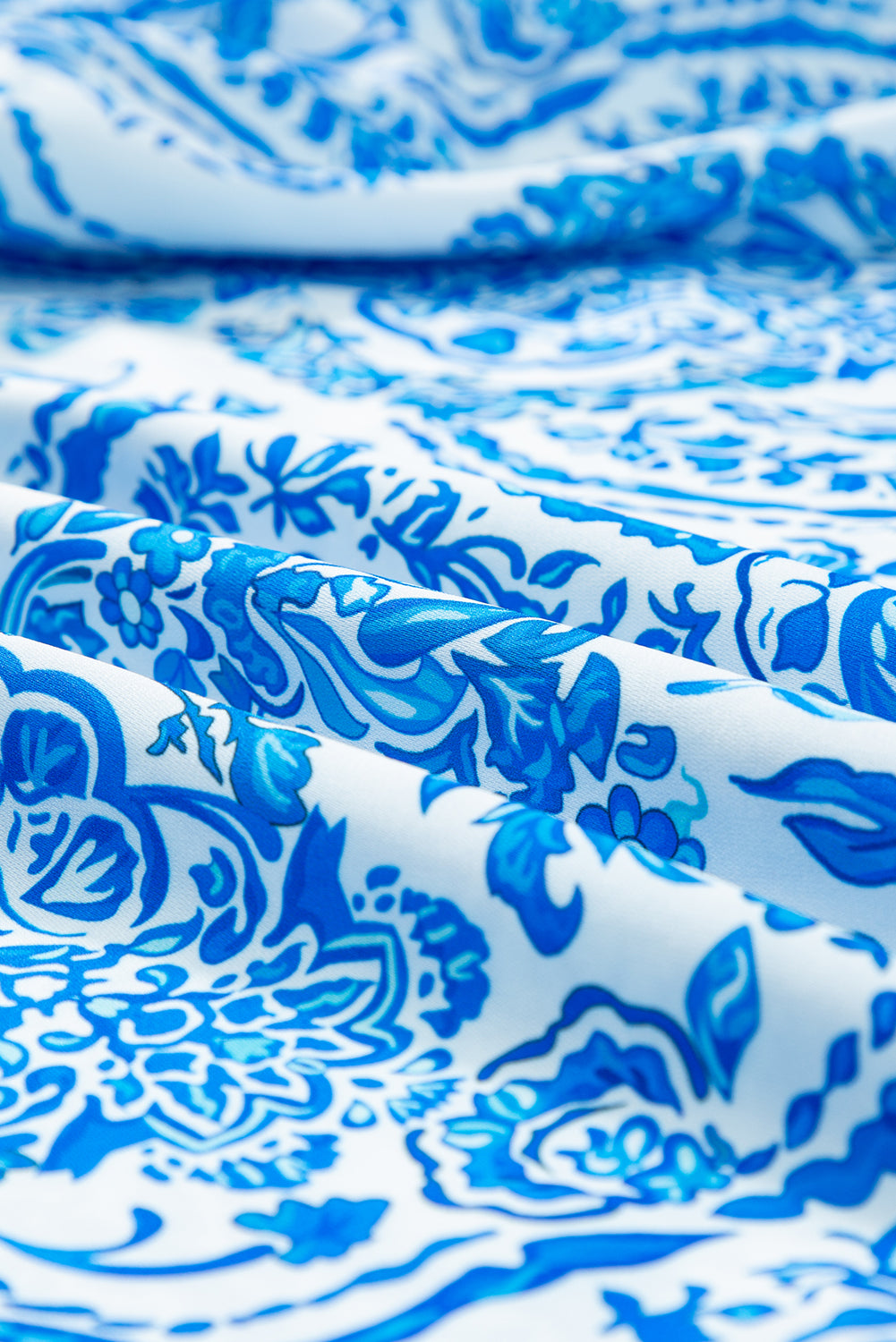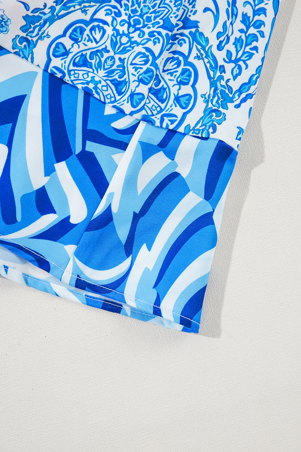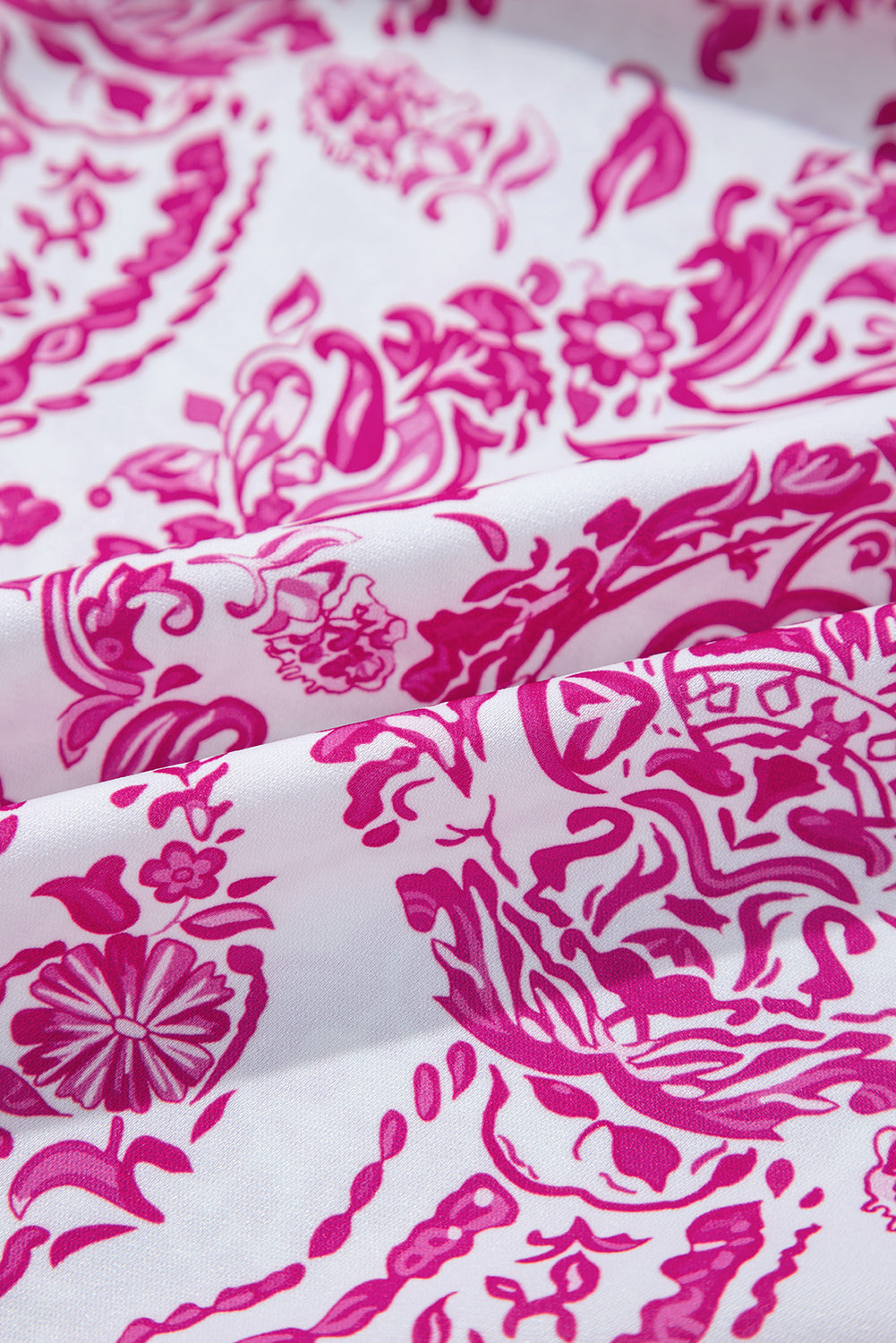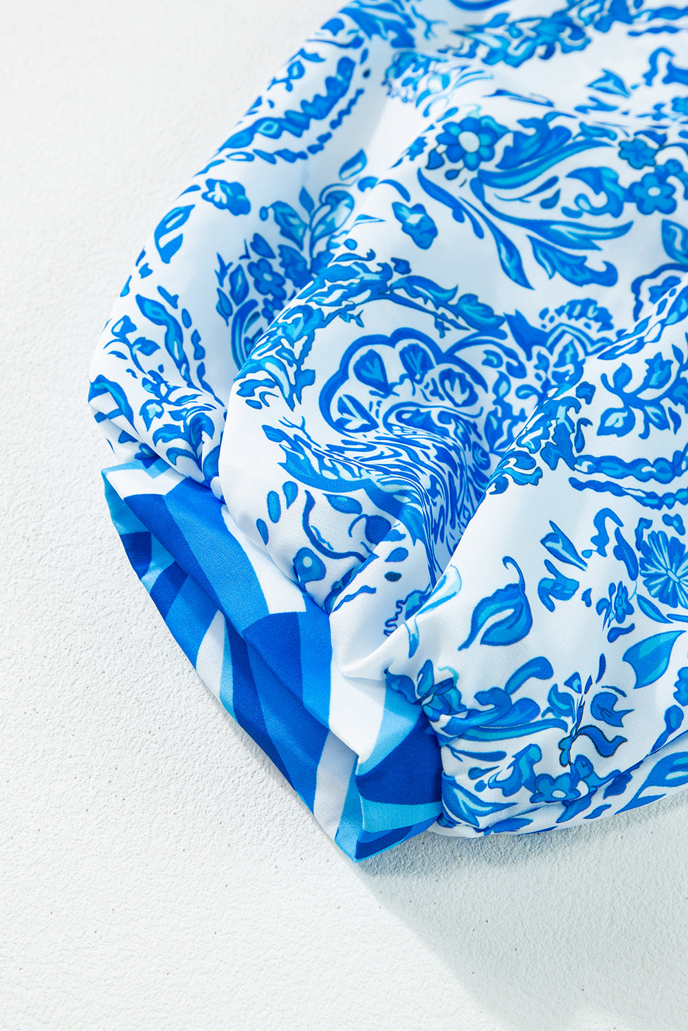 Orange Bohemian Print Puff Sleeve Tied V Neck Flared Mini Dress
