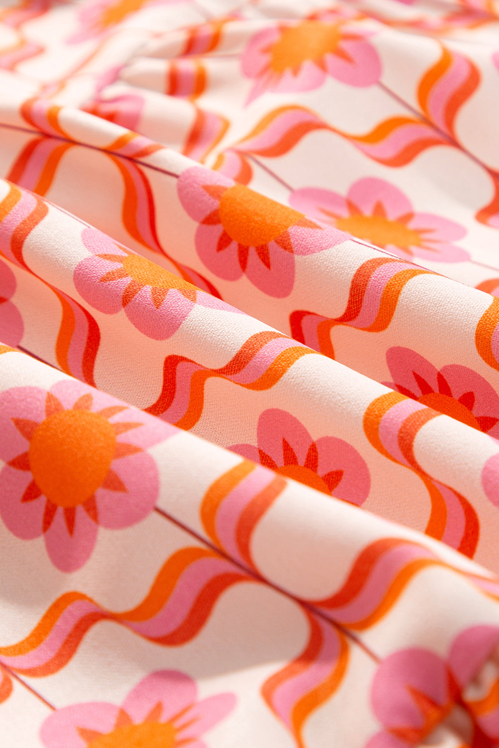 Orange Floral Print Flounce Sleeve Buttoned Front Mini Dress