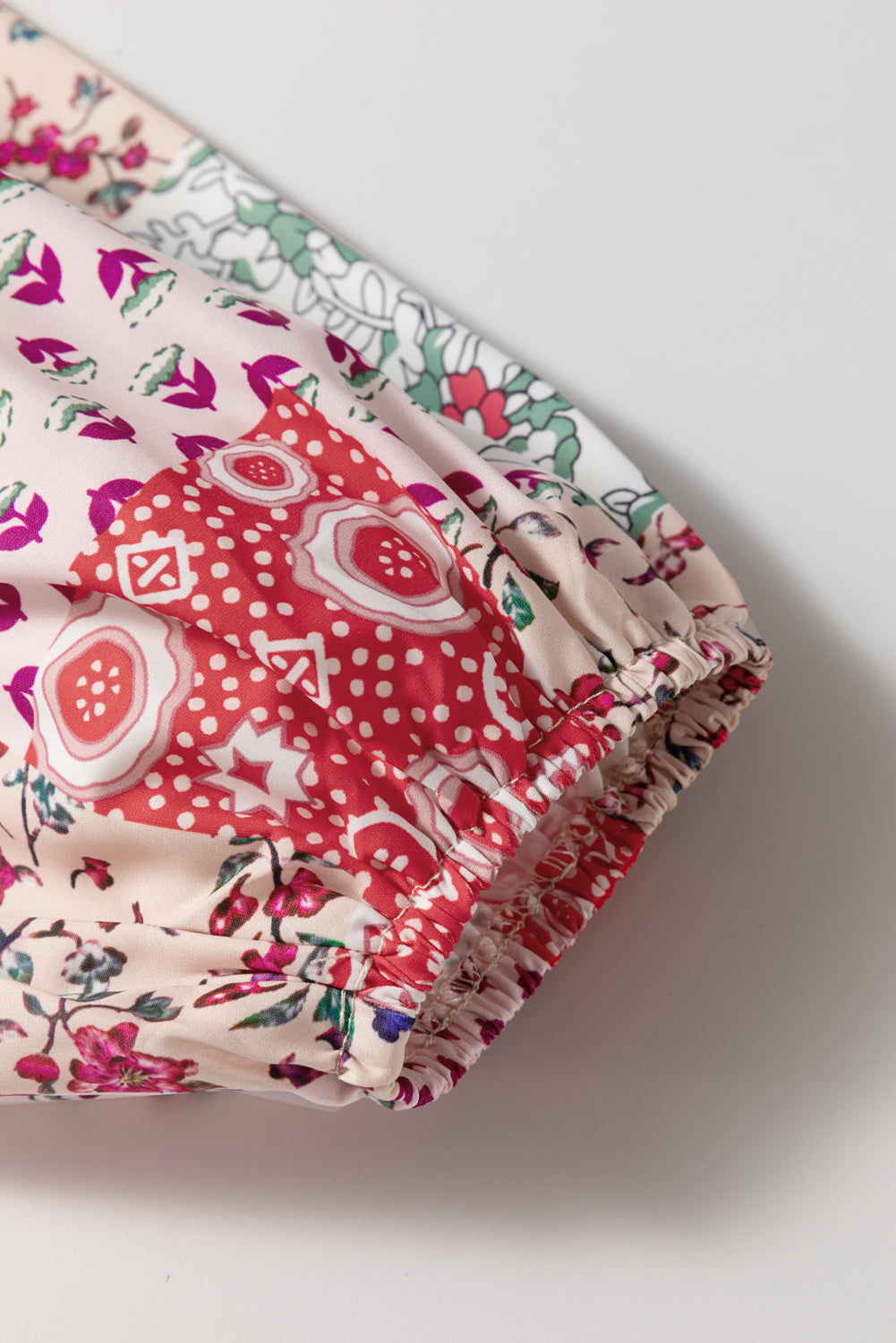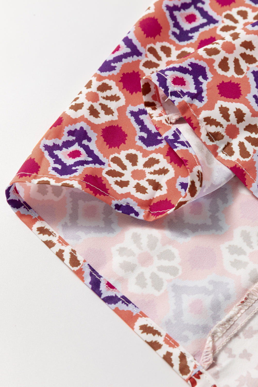 Orange Mixed Floral Printed Long Sleeve Tied V Neck Blouse