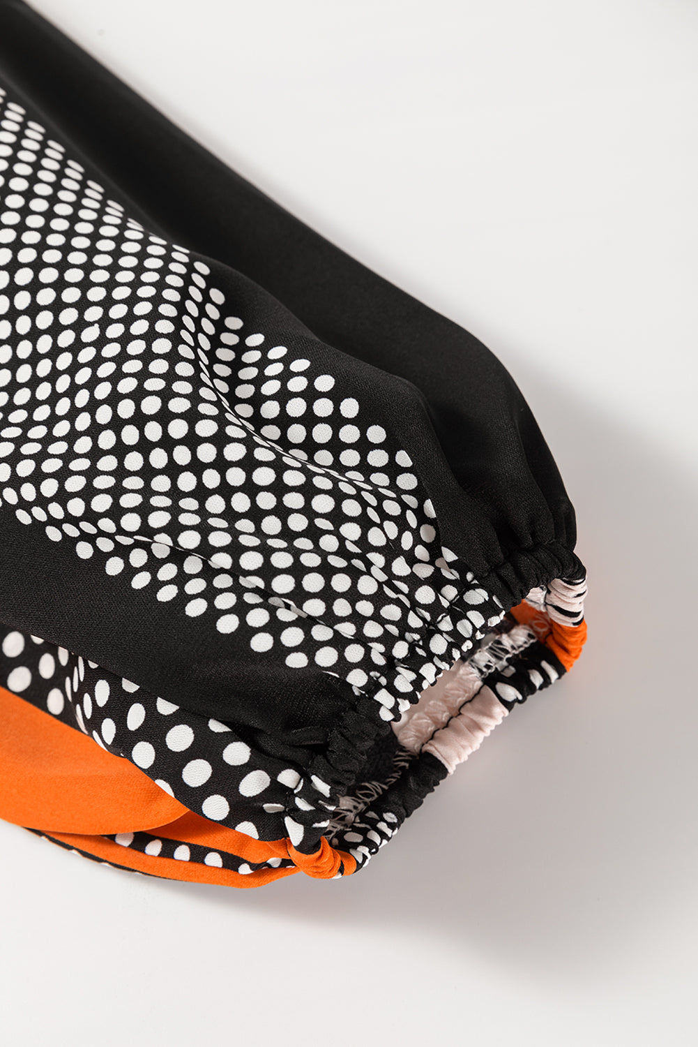 Orange Polka Dot Vertical Striped Printed Puff Sleeve Blouse