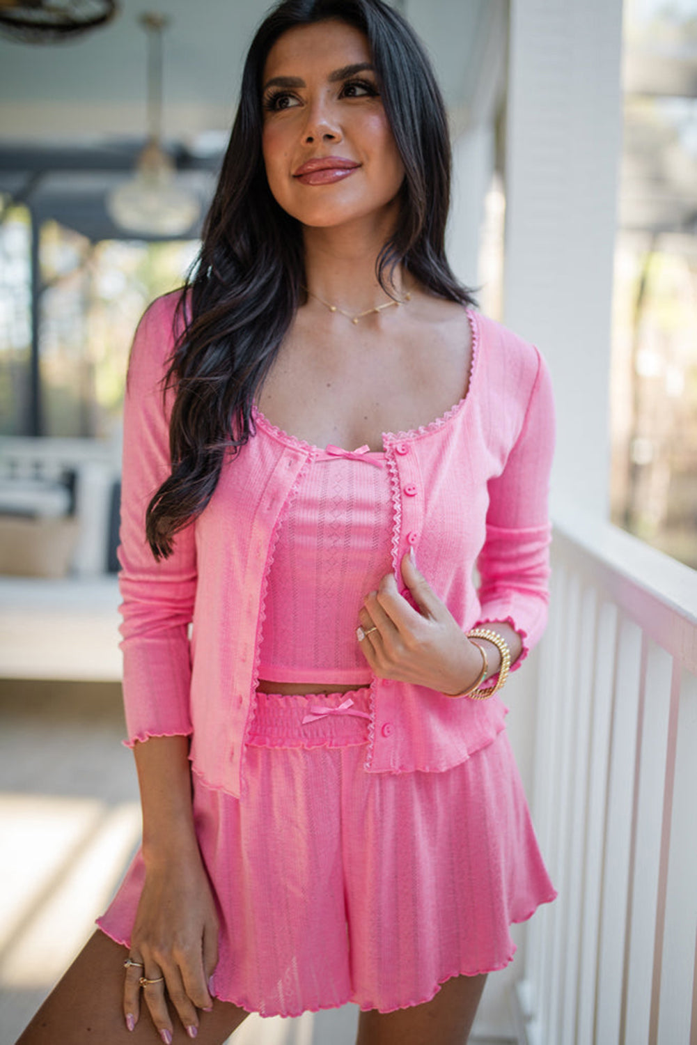 Orchid Petal Delicate Texture Cropped Cami Shorts and Cardigan 3pcs Lounge Set
