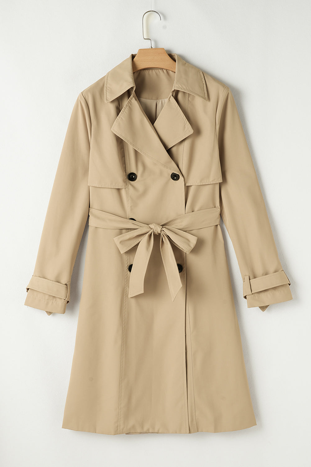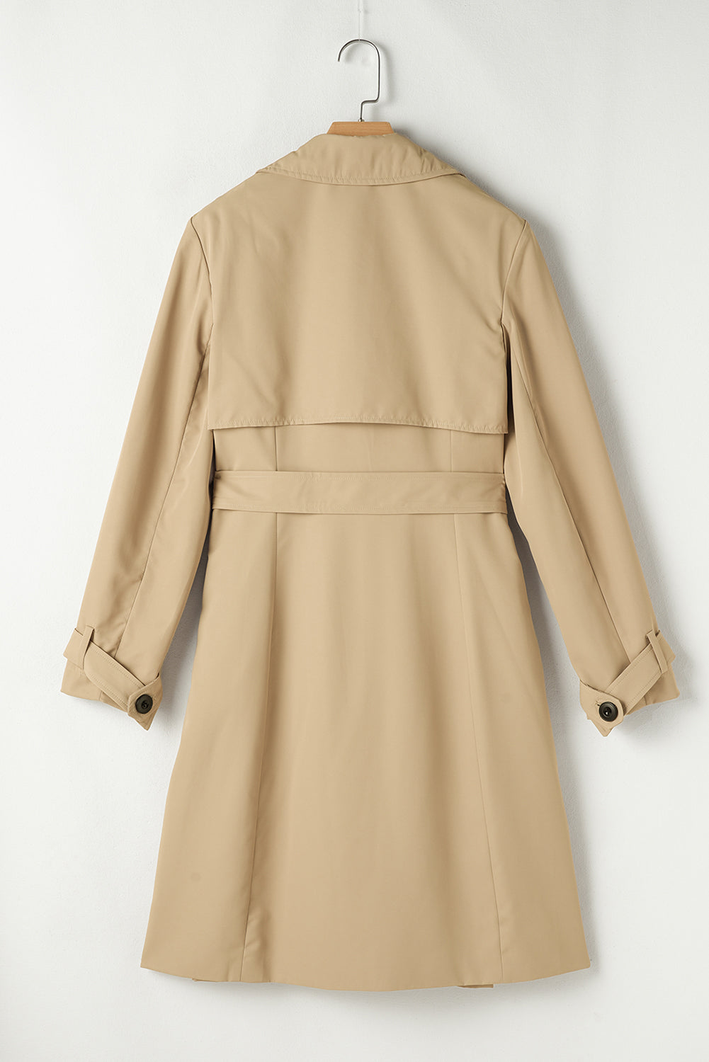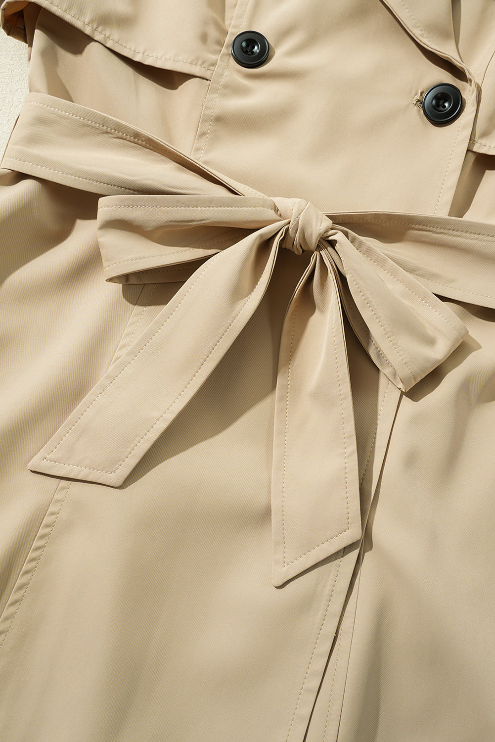 Pale Khaki Solid Color Lapel Collar Waist Tie Wind Coat