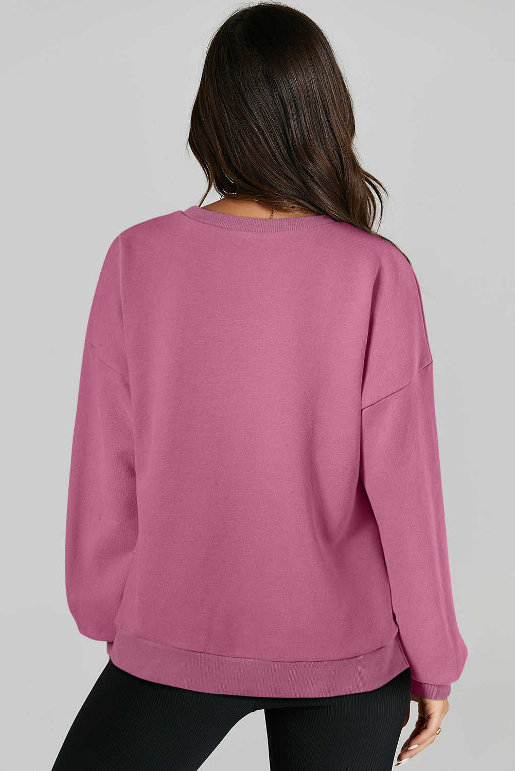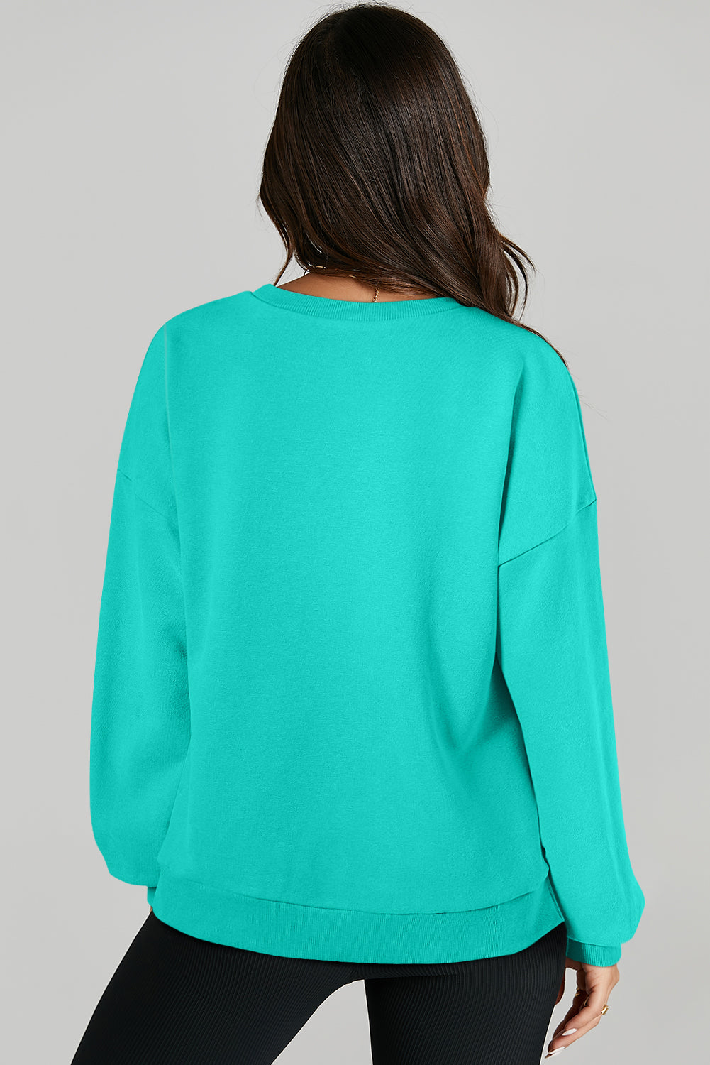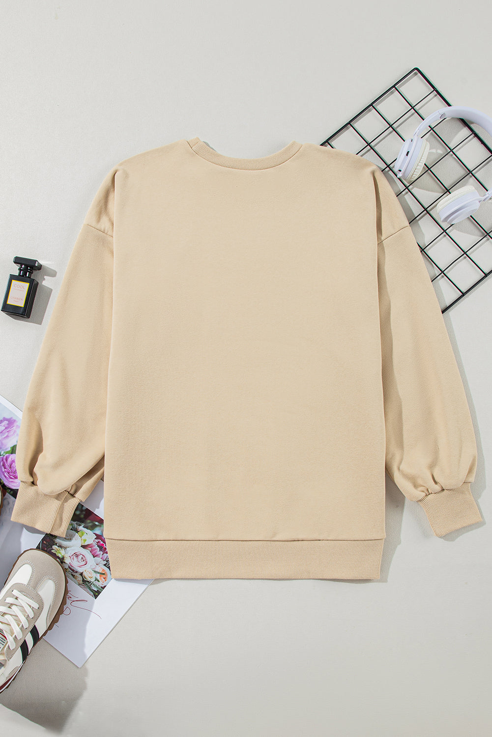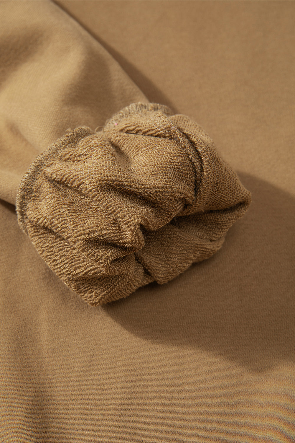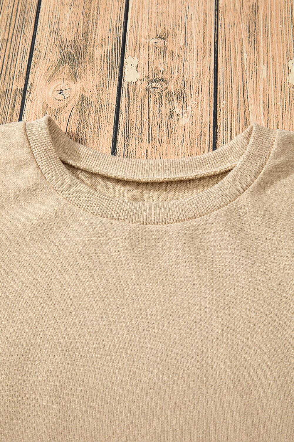 Parchment Solid O Neck High Low Hem Pullover Sweatshirt