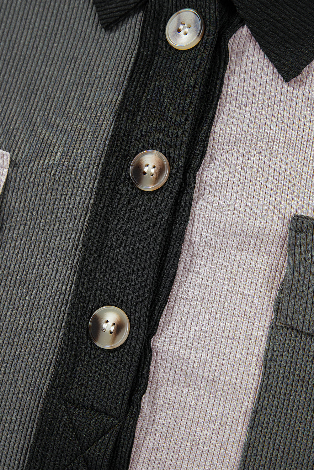 Pink Colorblock Ribbed Collared Oversized Sweatshirt