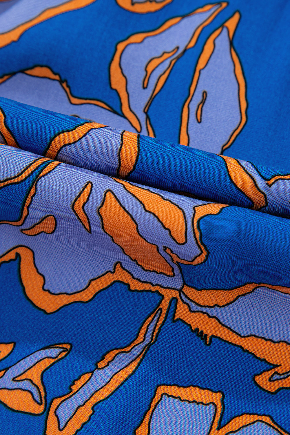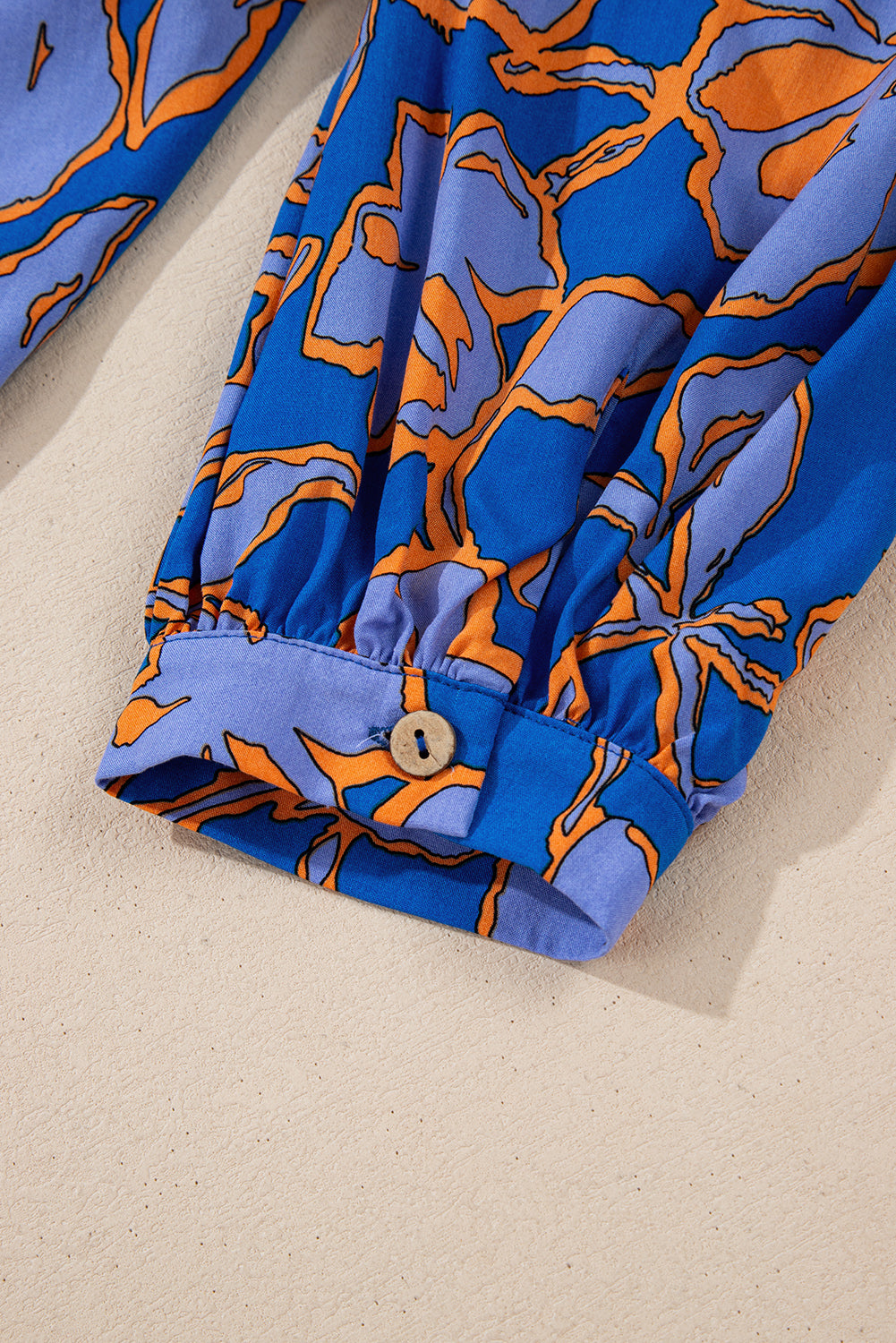Pink Floral Print Batwing Sleeve Buttoned Loose Fit Shirt