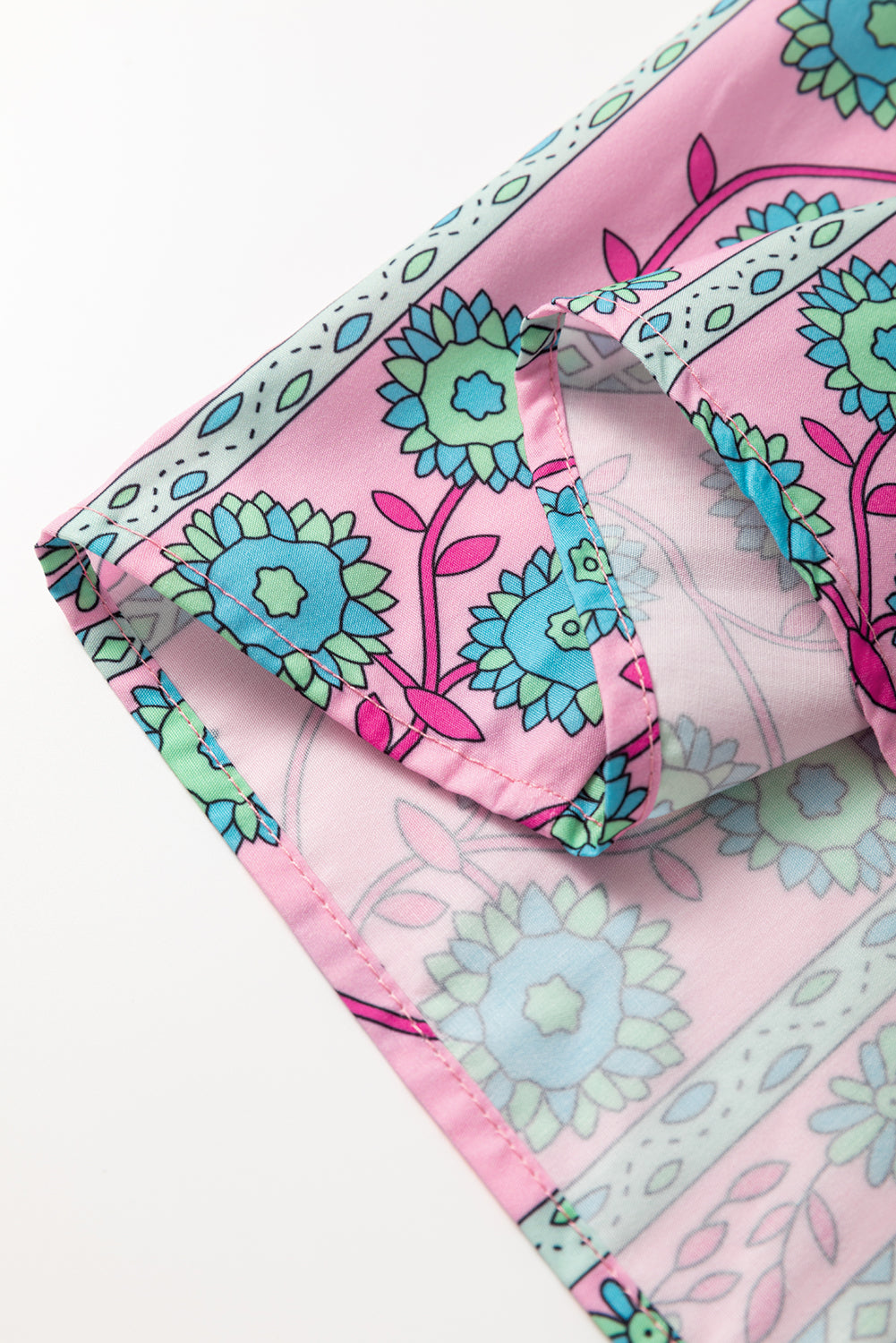 Pink Floral Shirred Puff Sleeve Buttoned Front Midi Dress with Sash