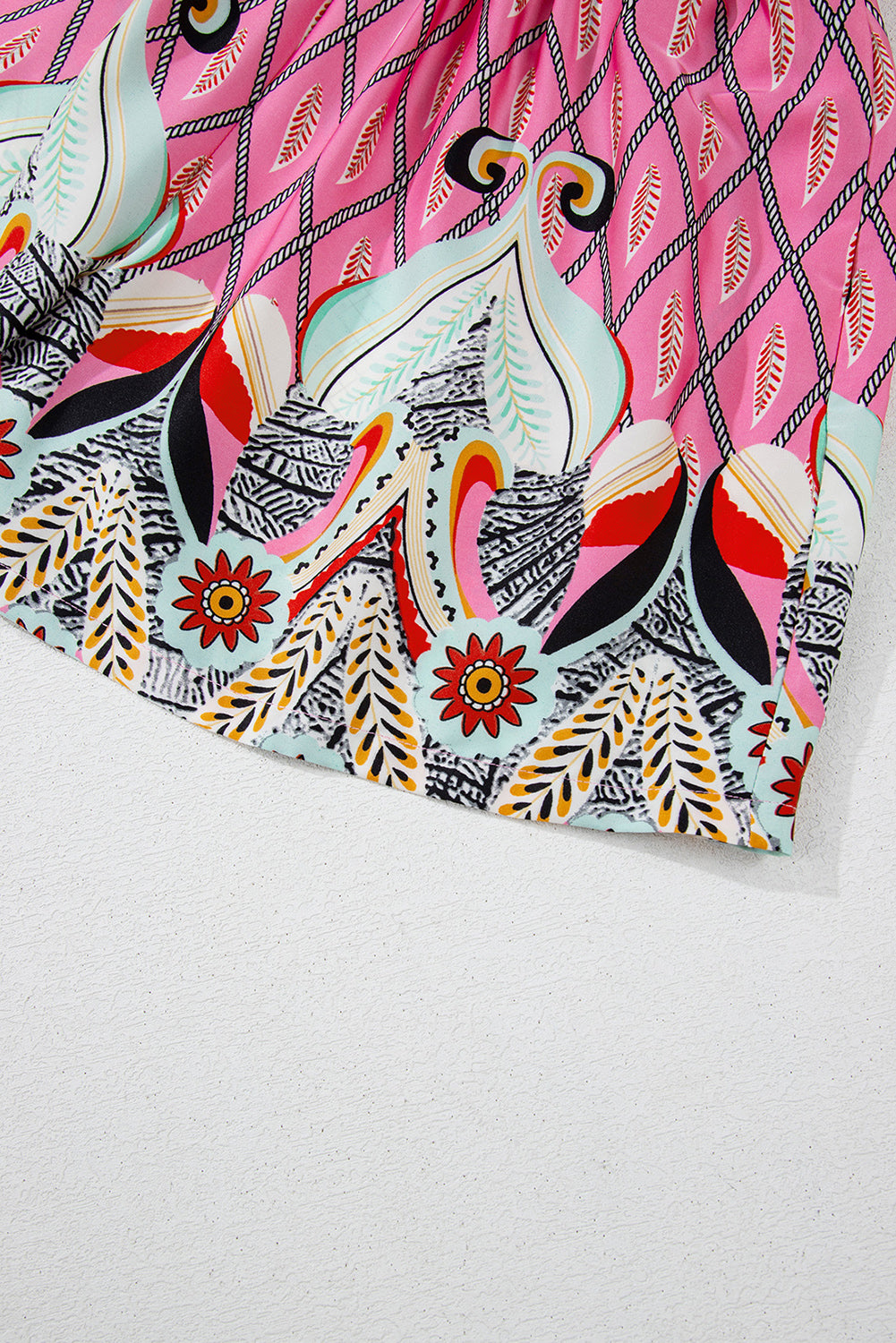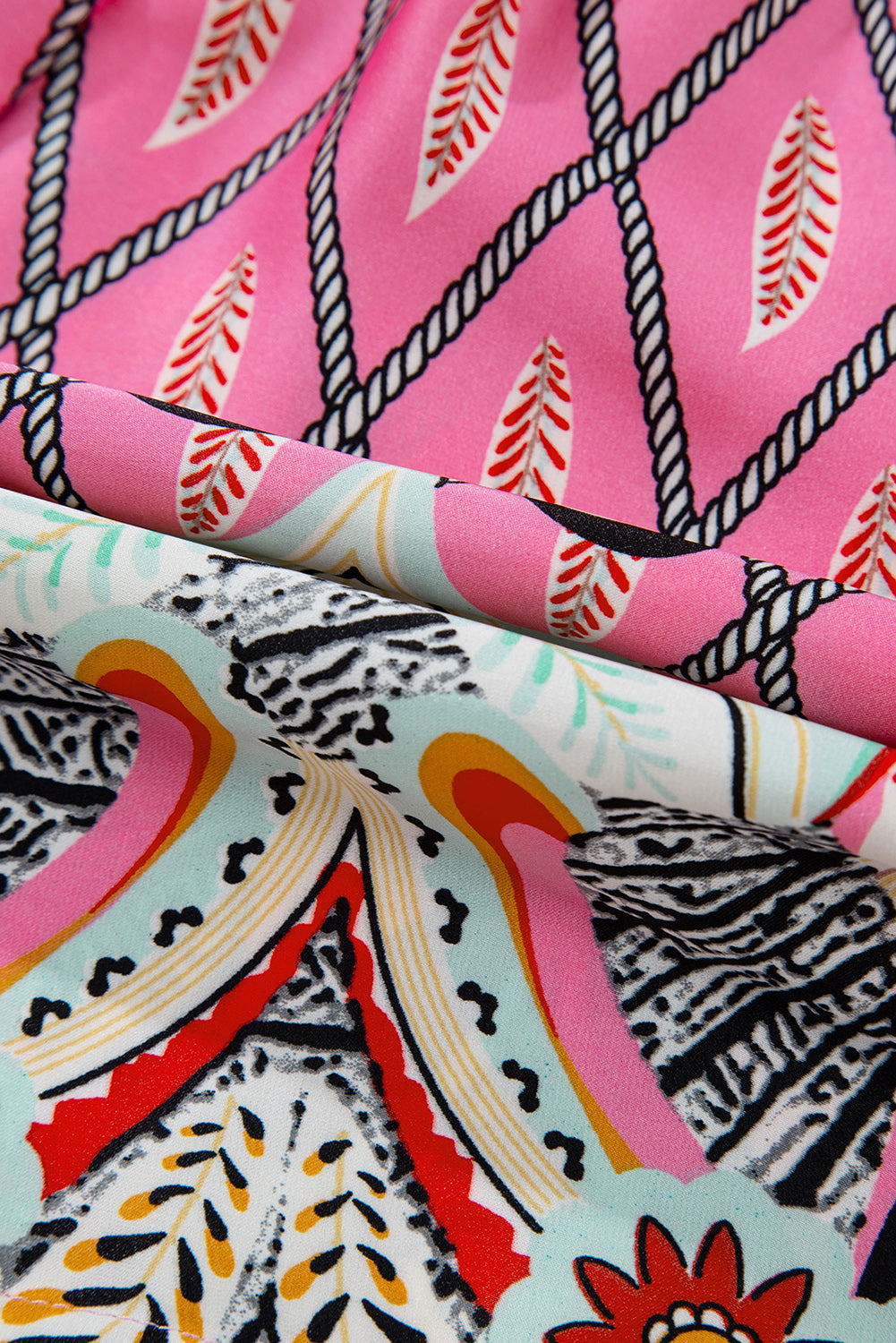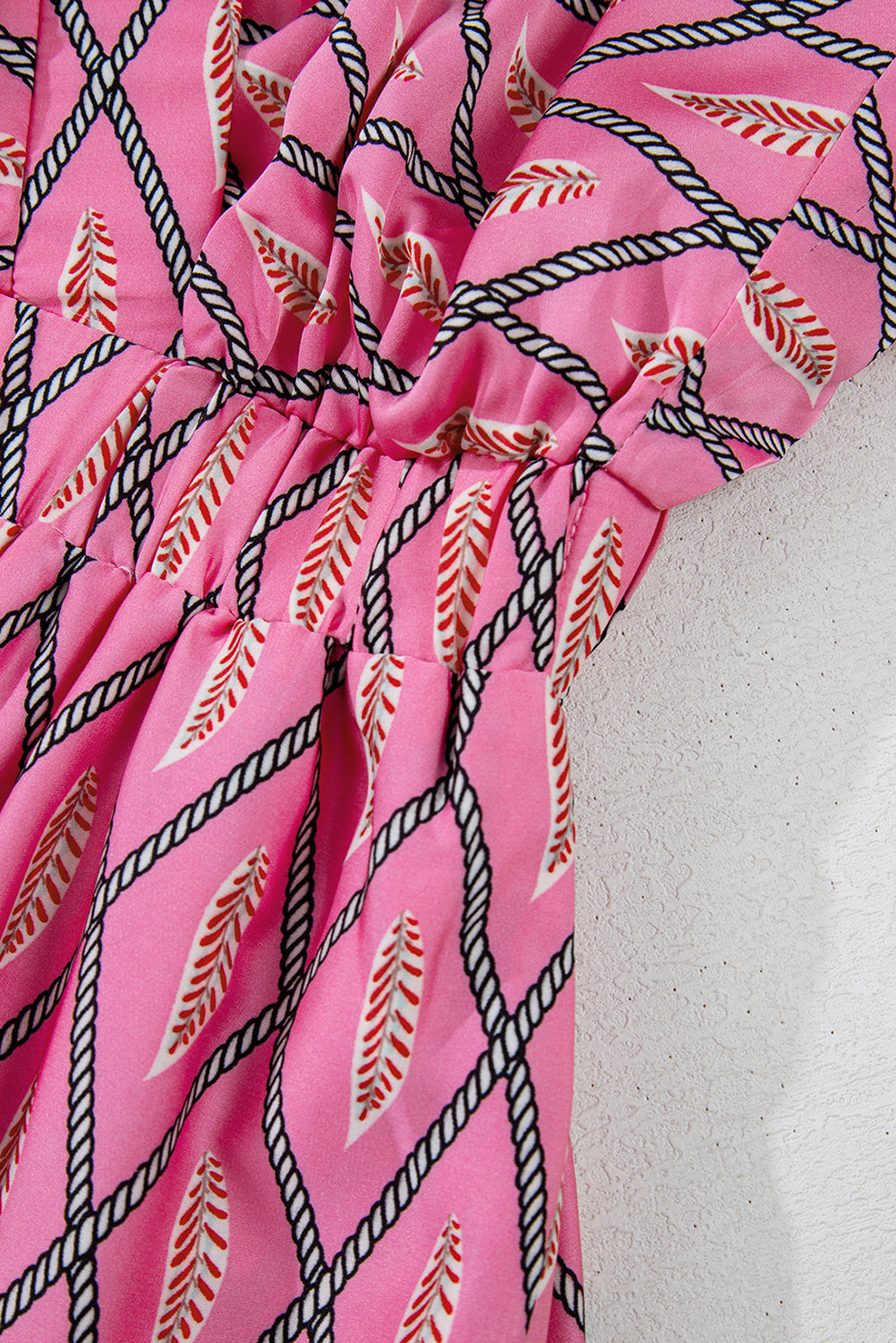 Pink Paisley Geometric Print V Neck High Waist Romper