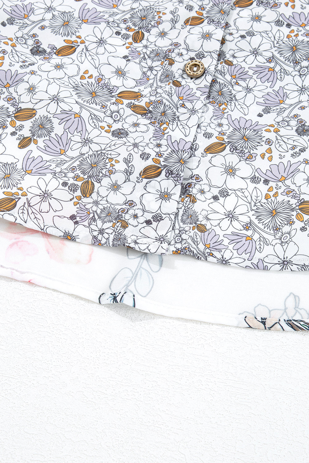 Purple Boho Floral Bishop Sleeve Button Up Loose Shirt