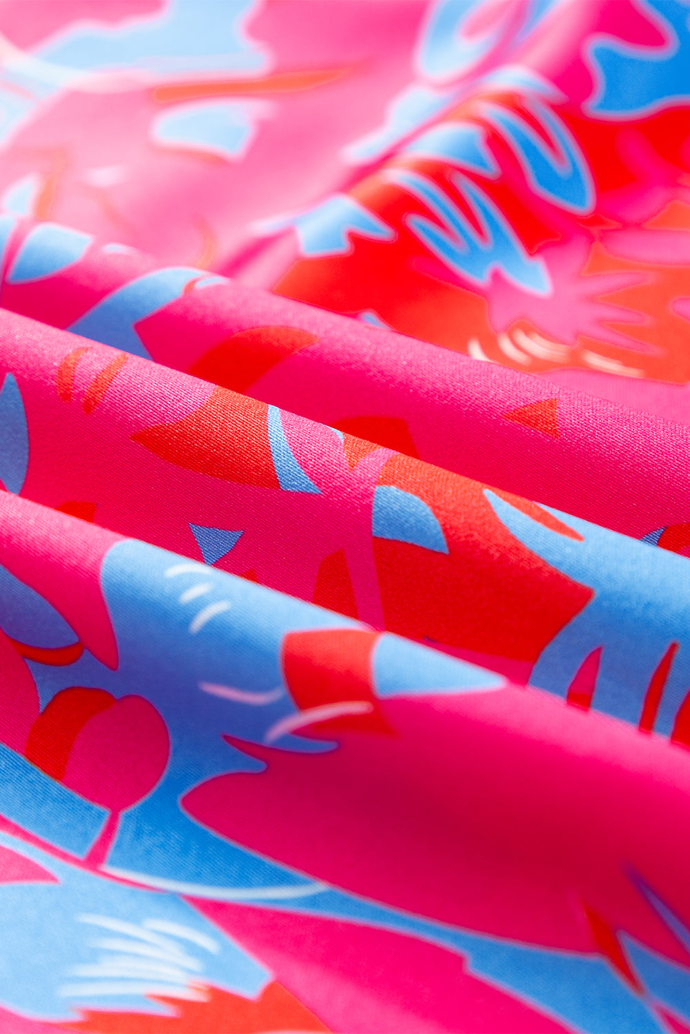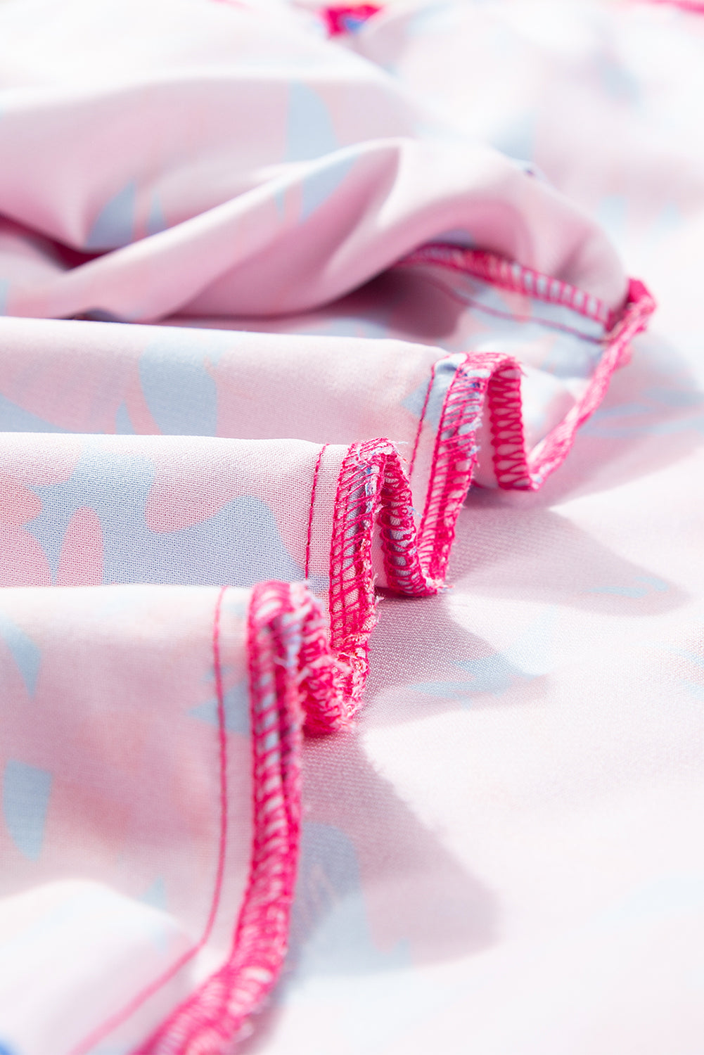 Purple Printed Bubble Sleeve Mock Neck Blouse