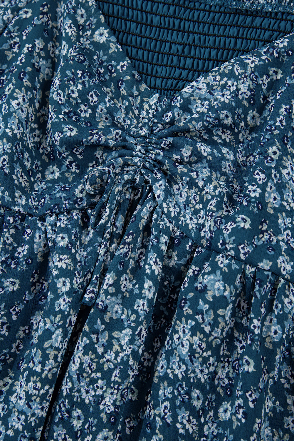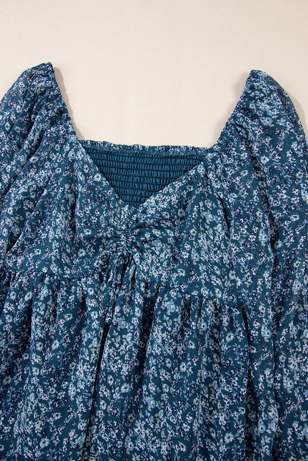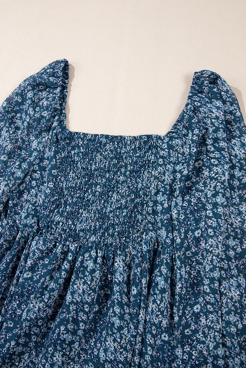 Red Floral Print Sweetheart Neck Shirred Back Mini Dress