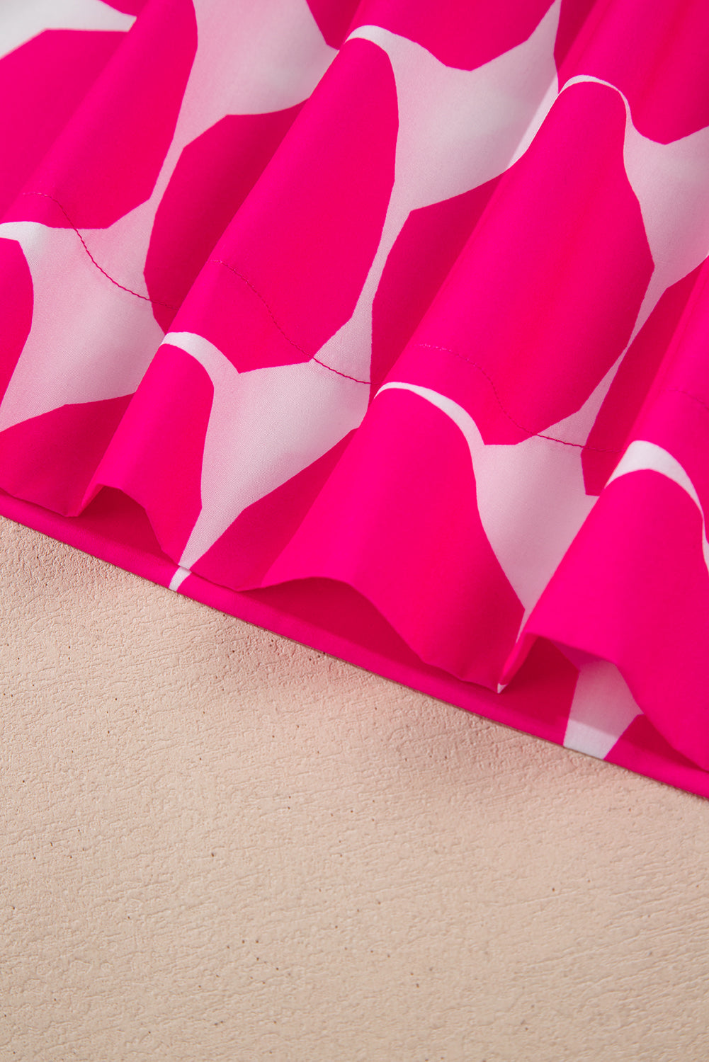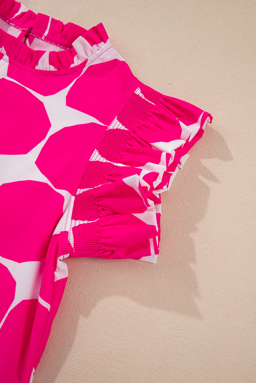 Rose Bubblegum Pattern Frilled Collar Flutter Sleeve Top