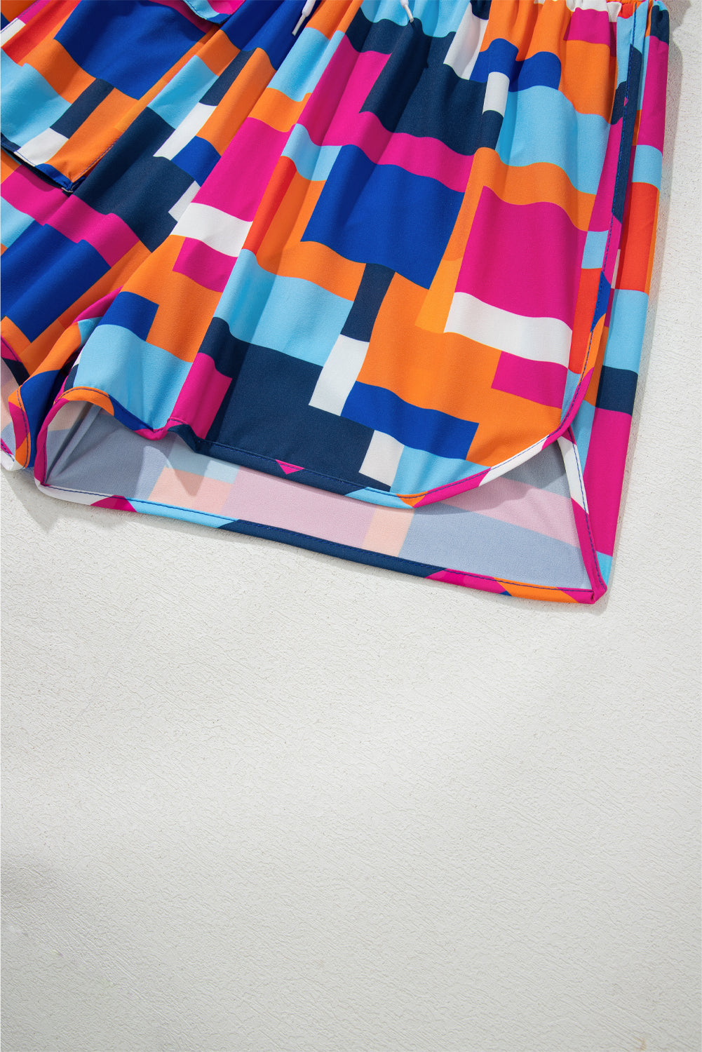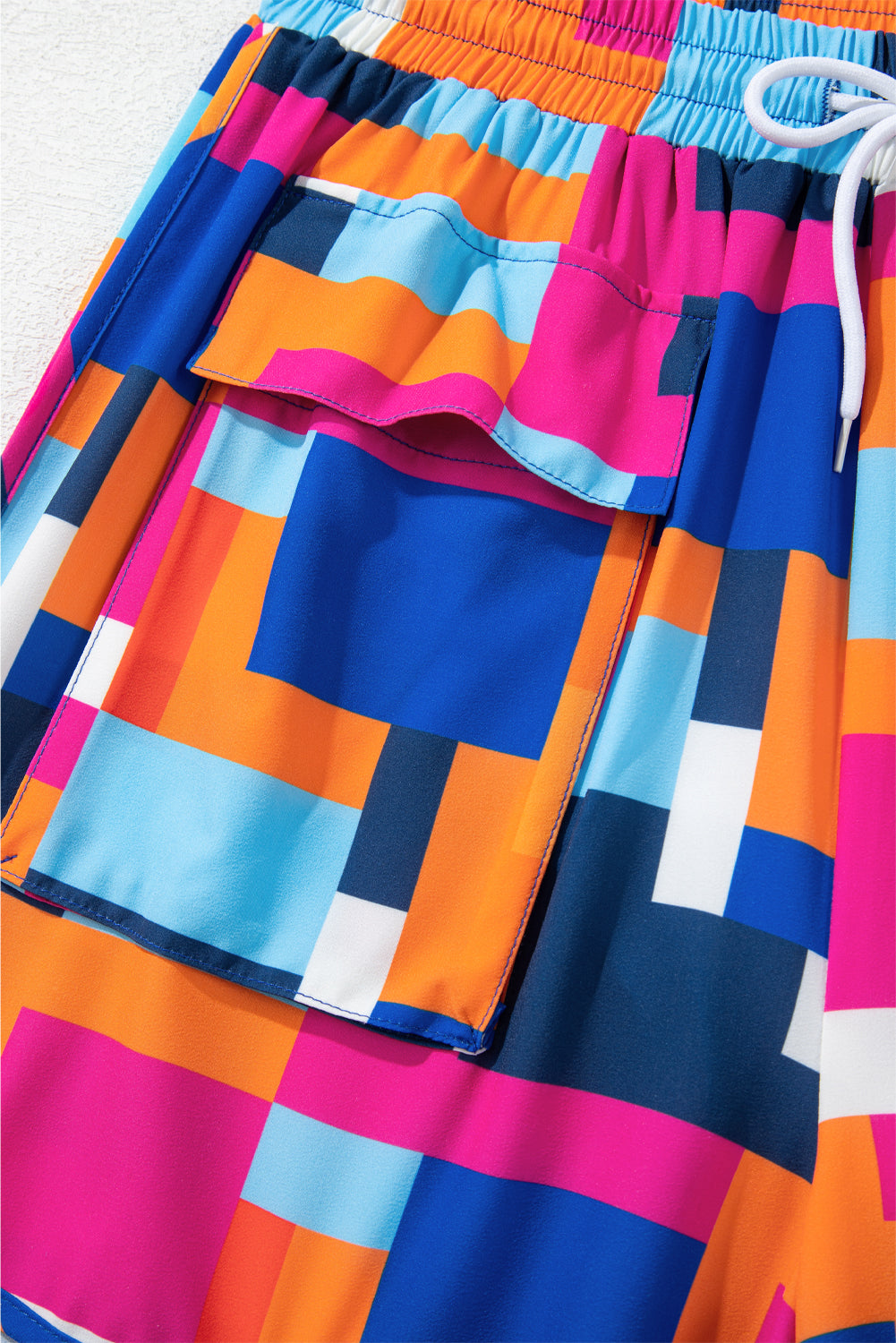 Rose Geometric Printed Drawstring Waist Beach Shorts with Pockets