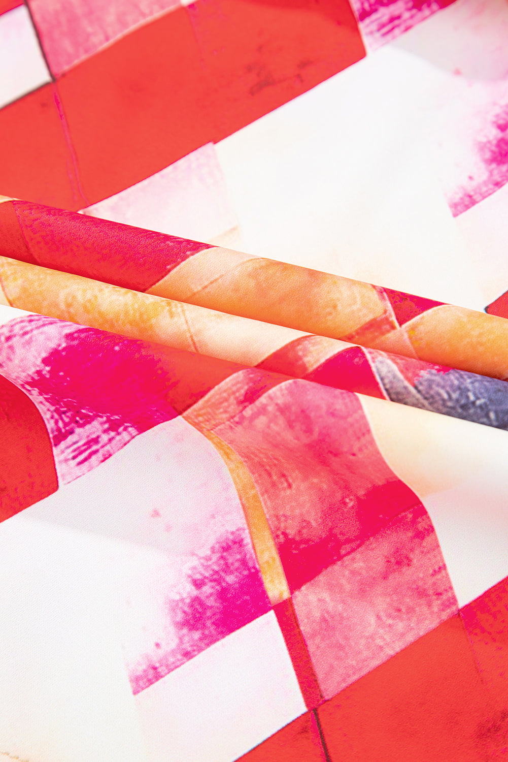 Rose Red Abstract Geometric Pattern Patchwork Puff Sleeve Blouse