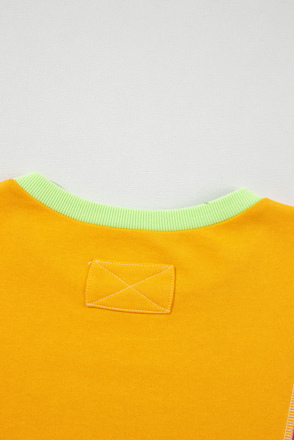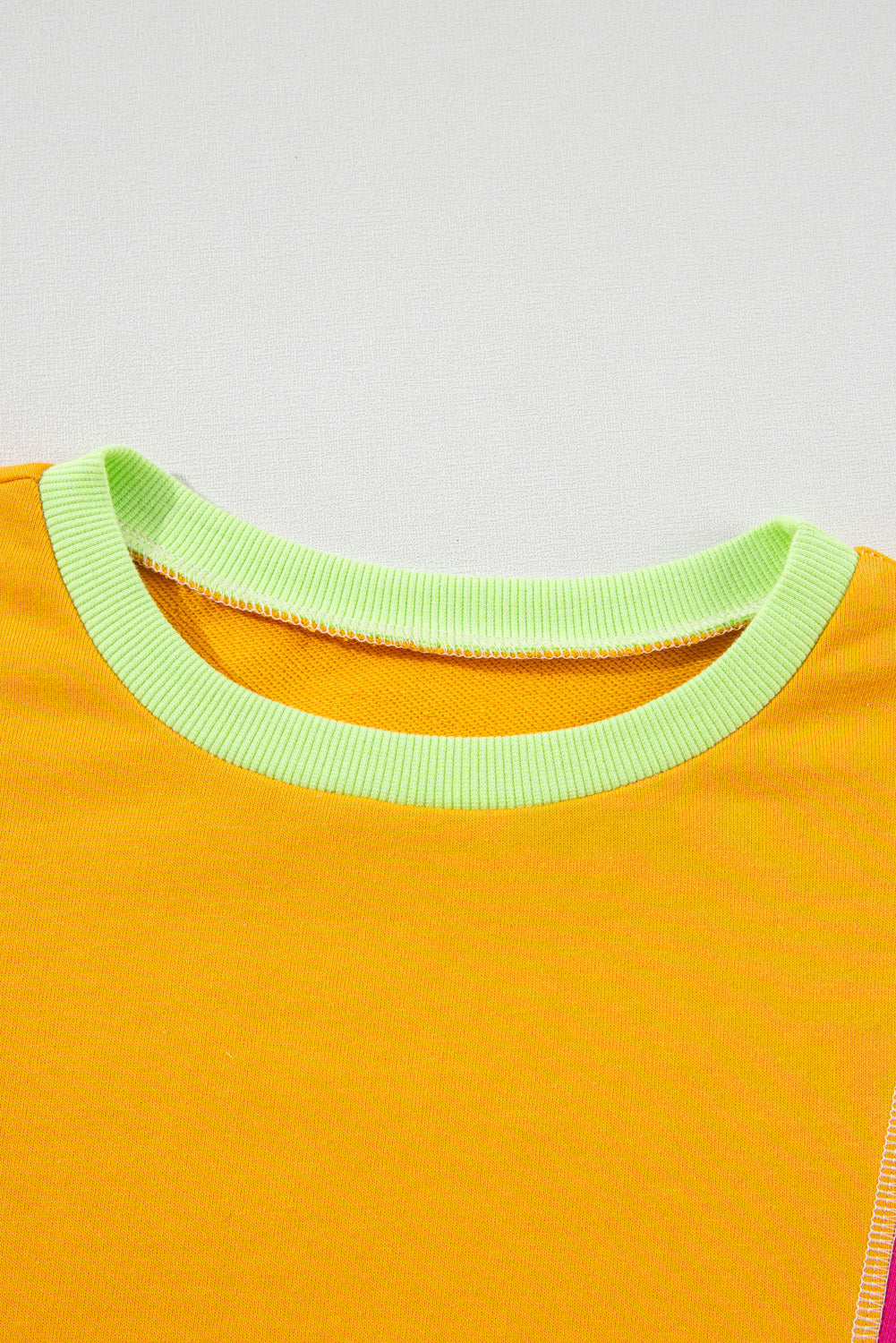 Rose Red Plus Size Colorblock Patchwork Exposed Seam Sweatshirt