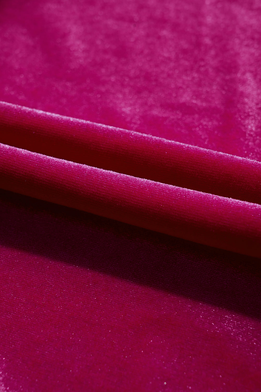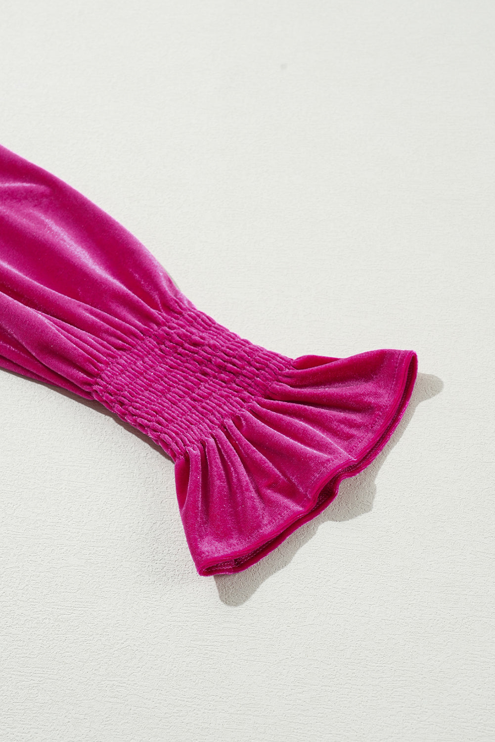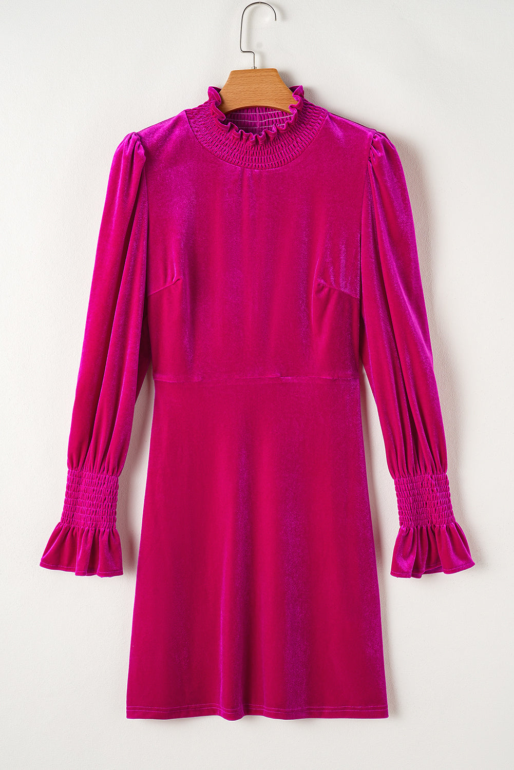 Rose Red Smocked Mock Neck Ruffled Puff Sleeve Velvet Mini Dress