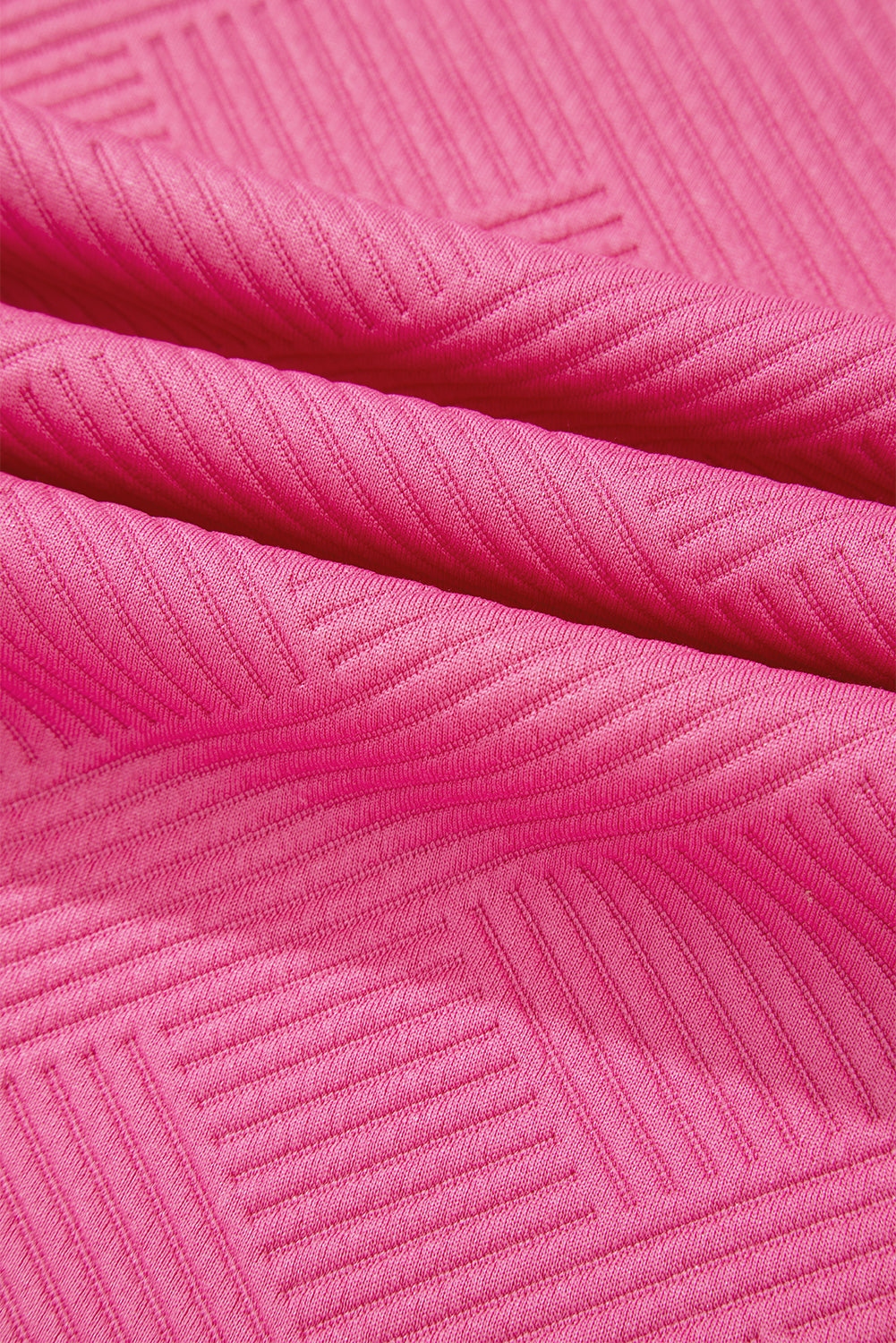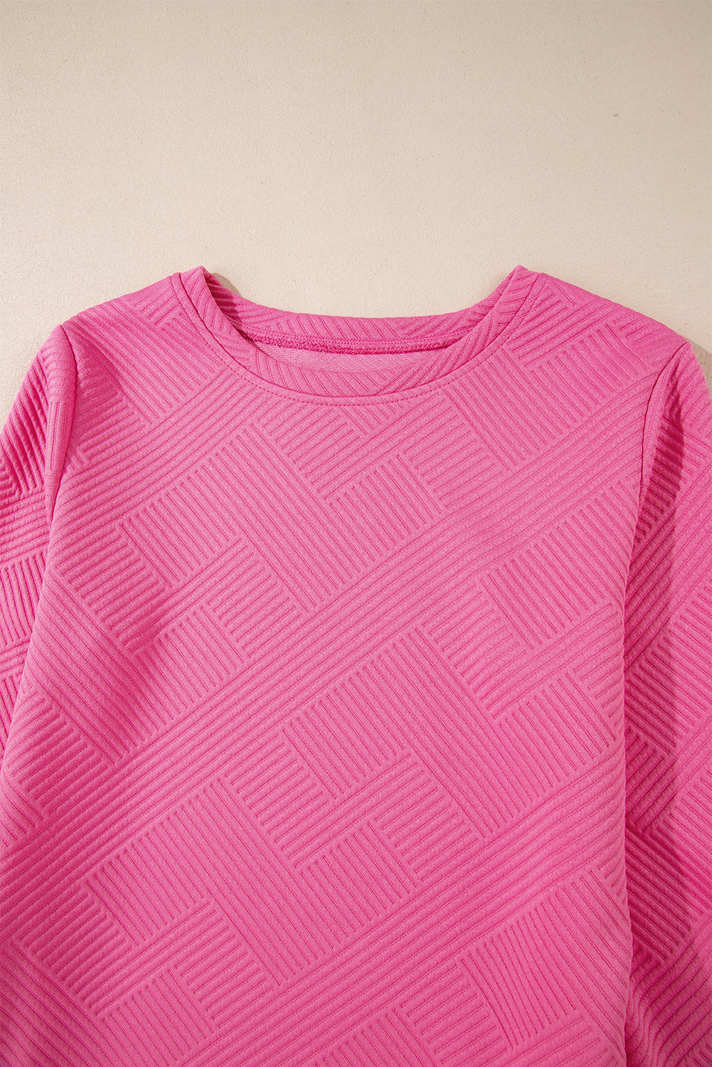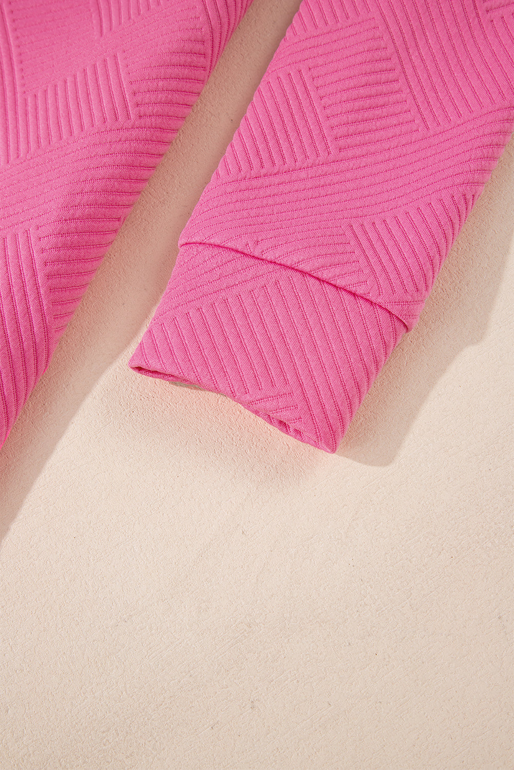 Rose Red Solid Color Textured Long Sleeve Shift Dress