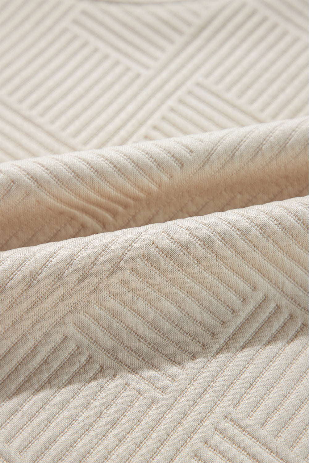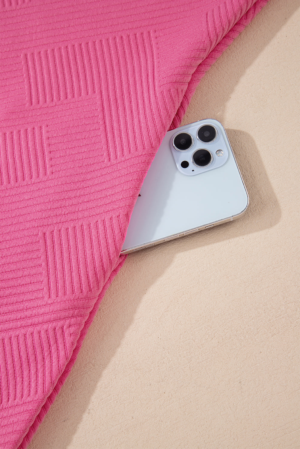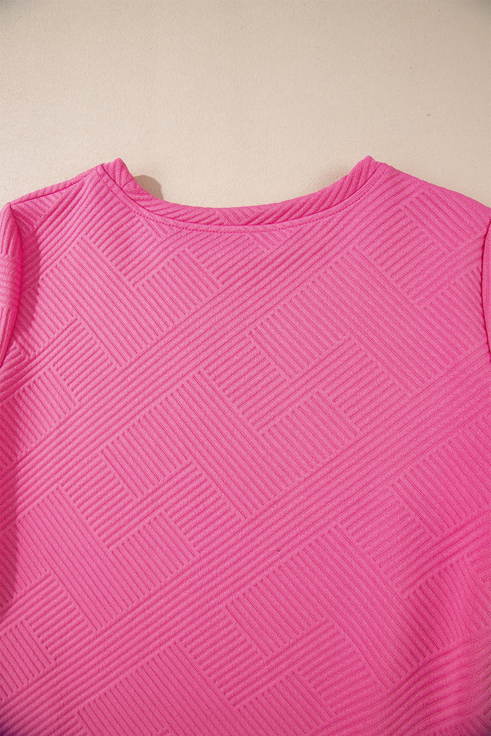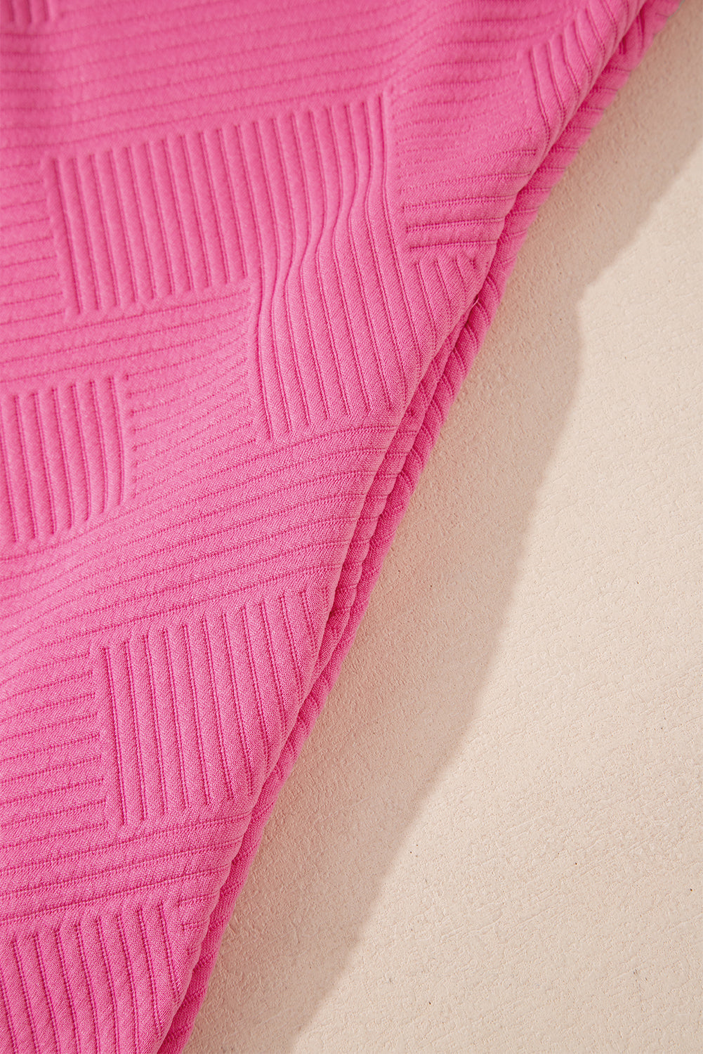 Rose Red Solid Color Textured Long Sleeve Shift Dress