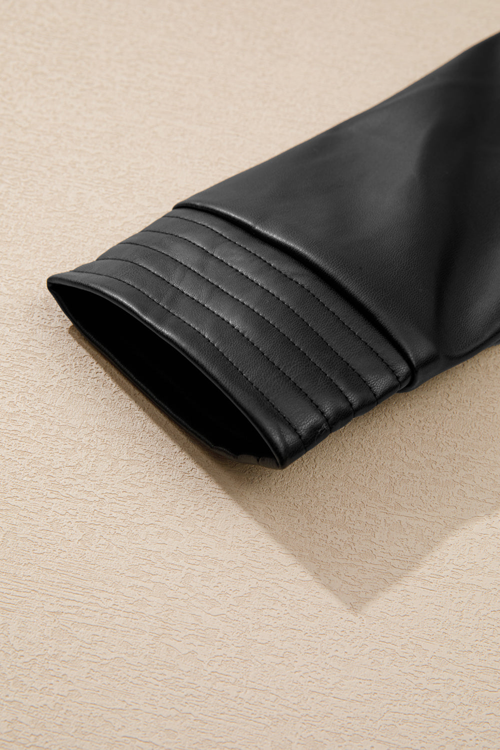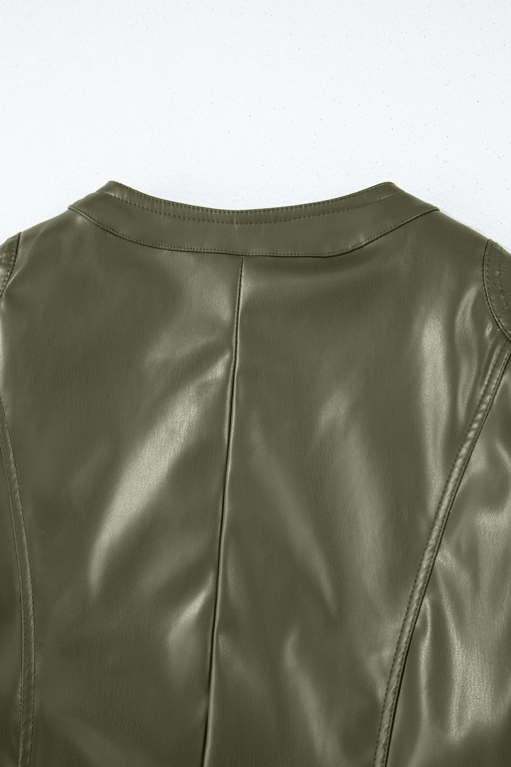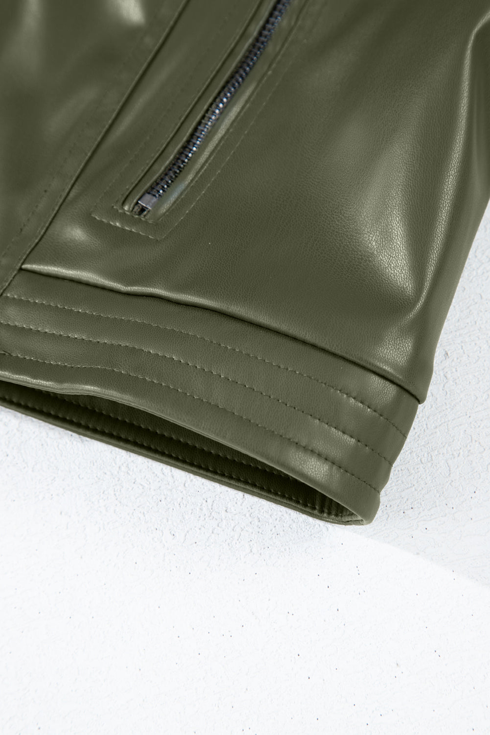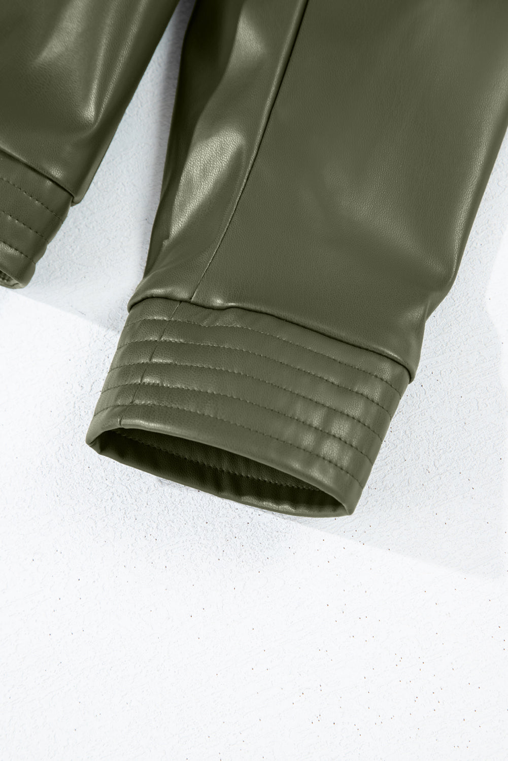 Sage Green Solid Faux Leather Zipper Slim Fit Bomber Jacket