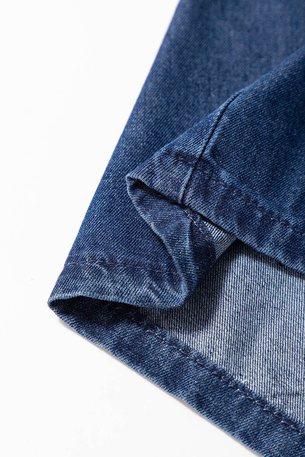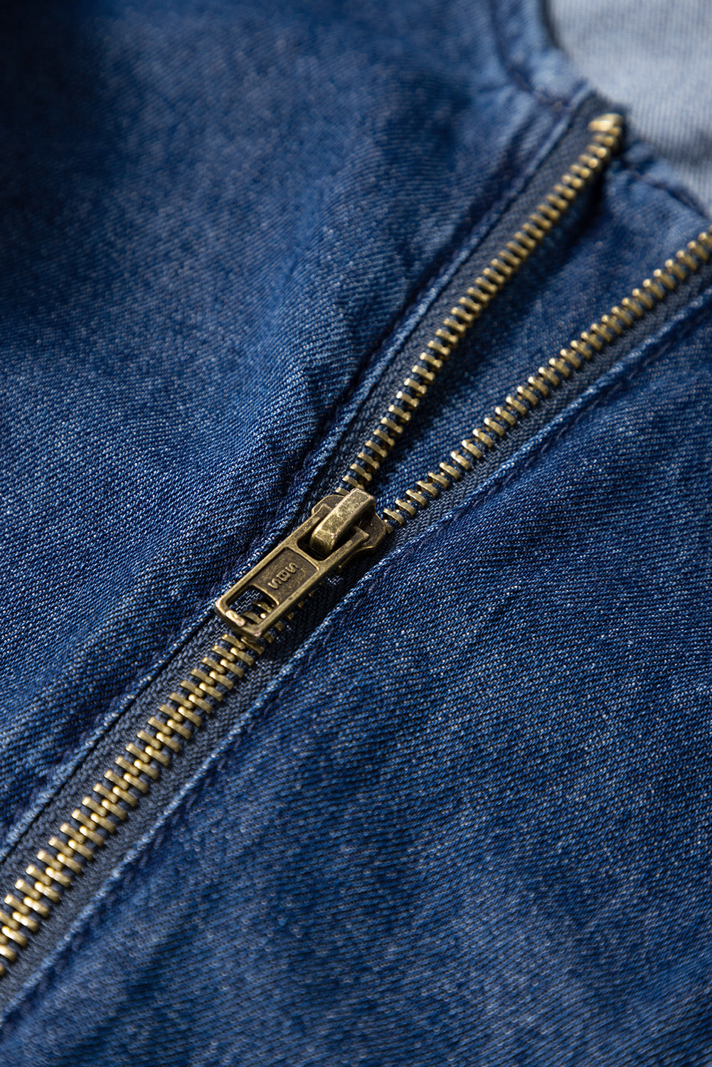 Sail Blue Denim Ruffled Zipped Front Belted Romper