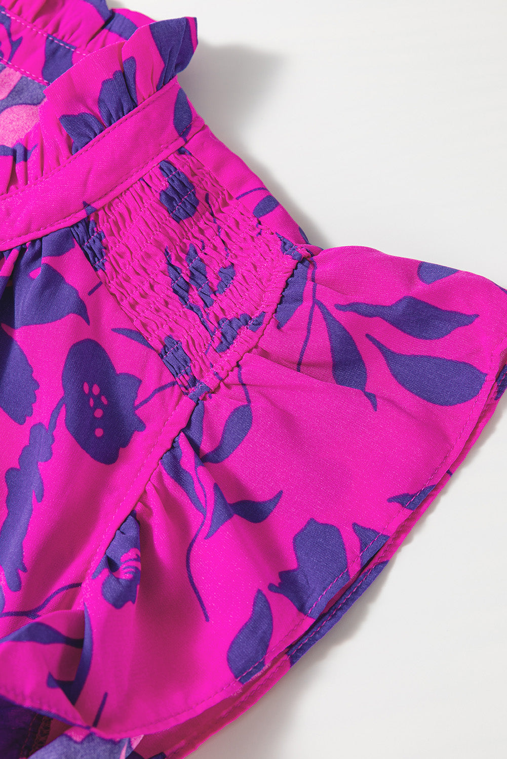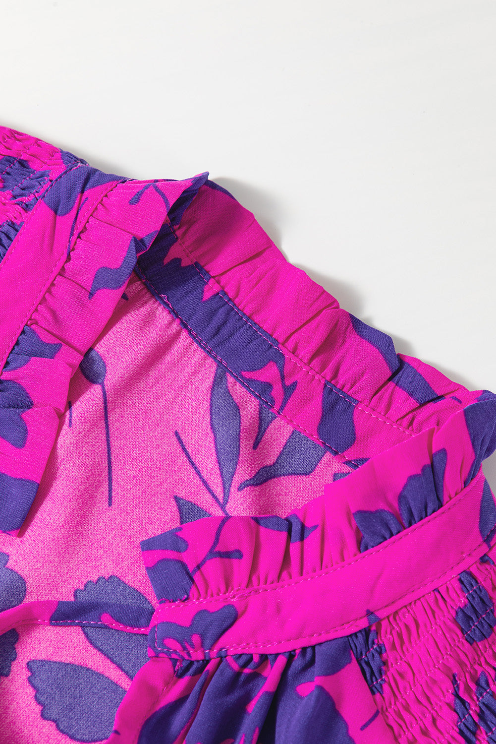 Sky Blue Floral Print Tiered Frilled Trim Flutter Sleeve Maxi Dress