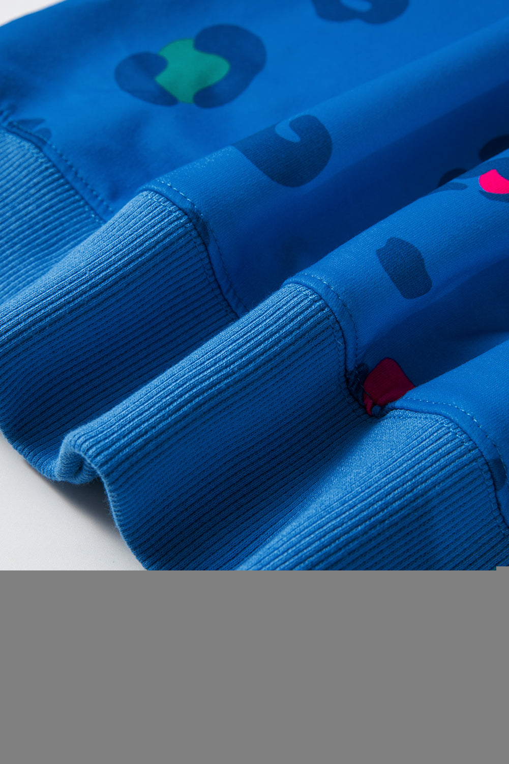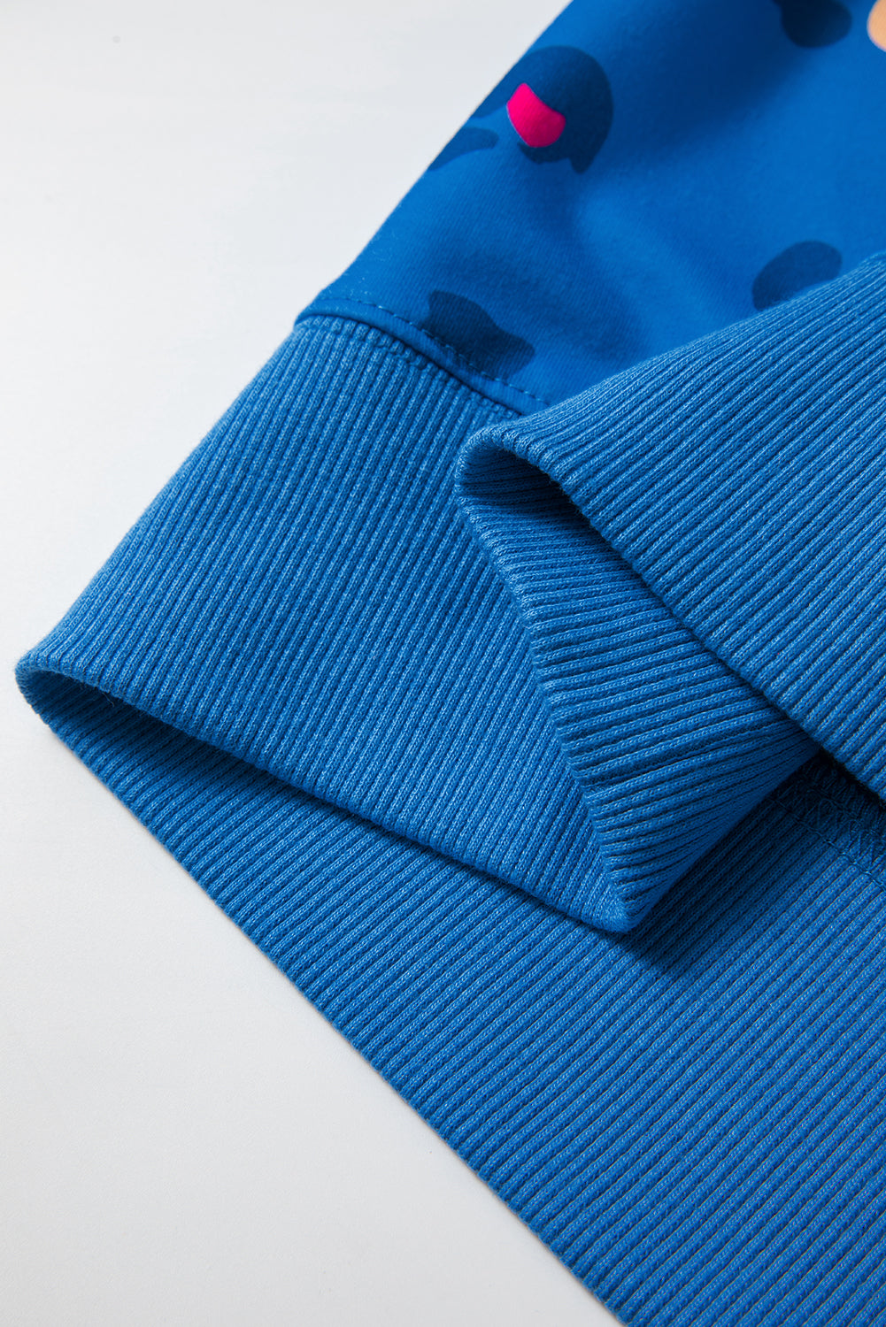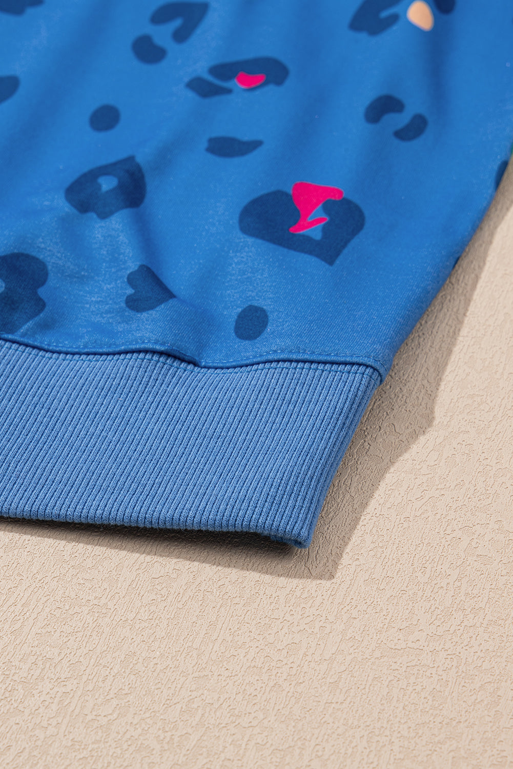 Sky Blue Leopard Ribbed Edge Drop Shoulder Pullover Sweatshirt