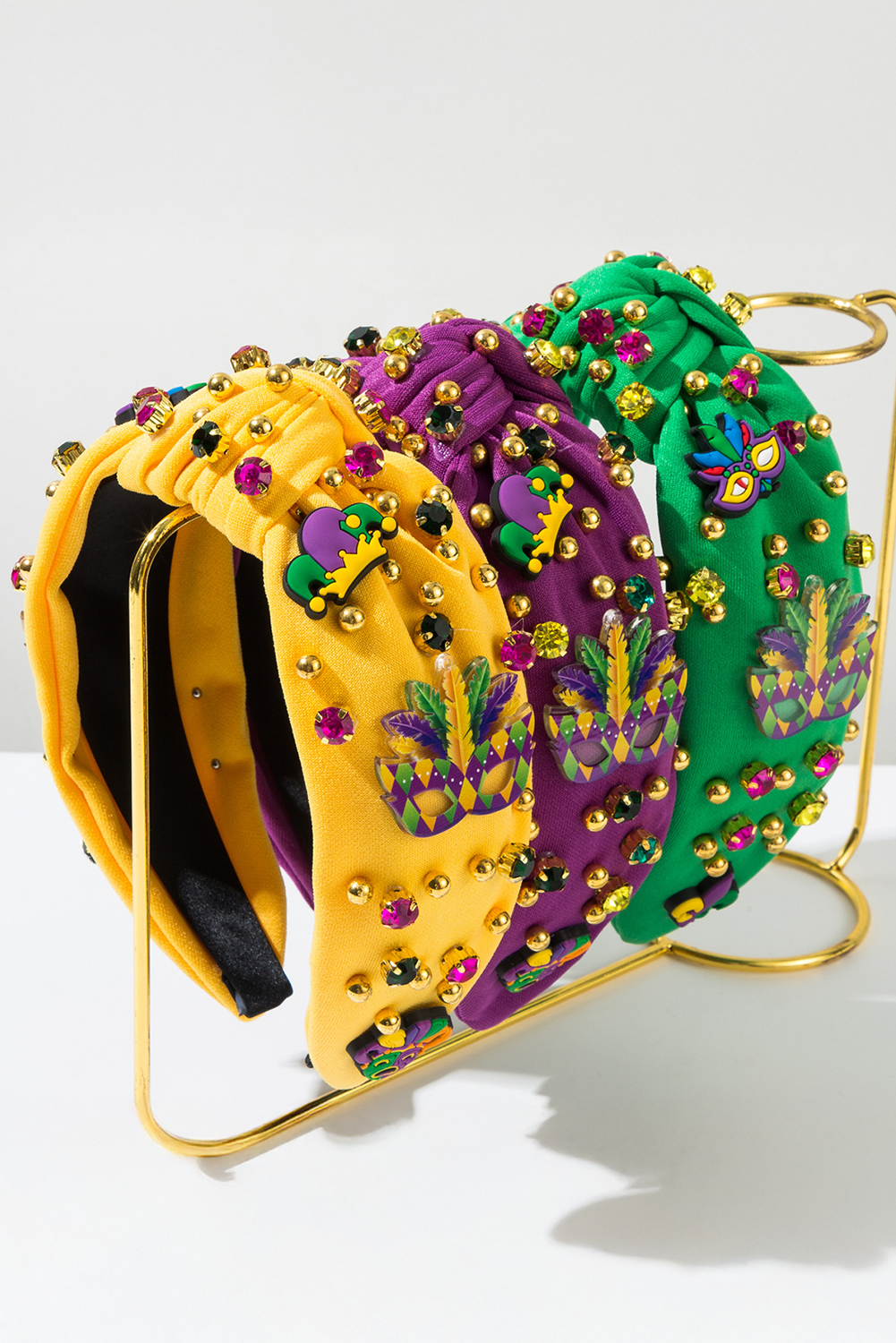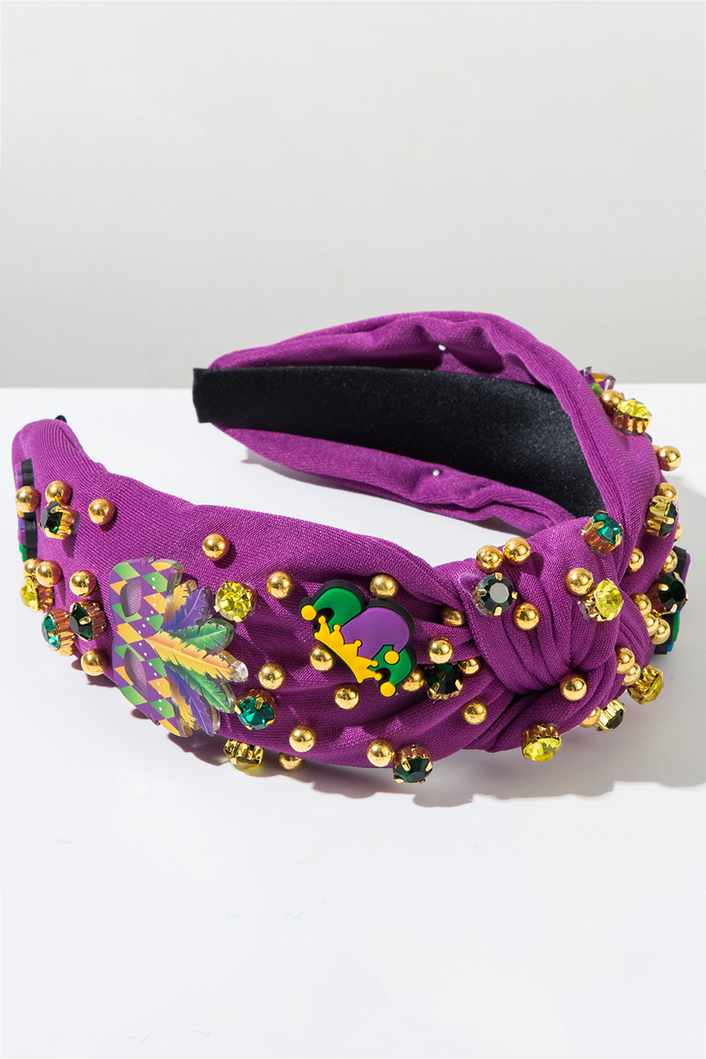 Tillandsia Purple Mardi Gras Rhinestone Beaded Knotted Wide Headband