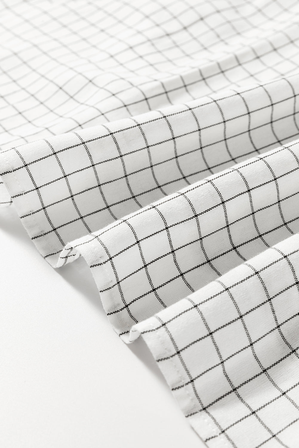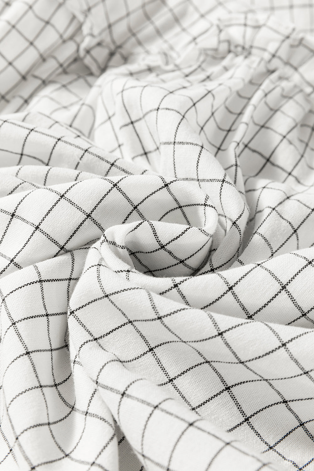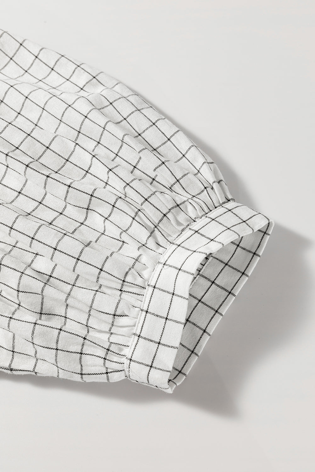 White Stripe Checkered Frilled V Neck Bracelet Sleeve Babydoll Dress