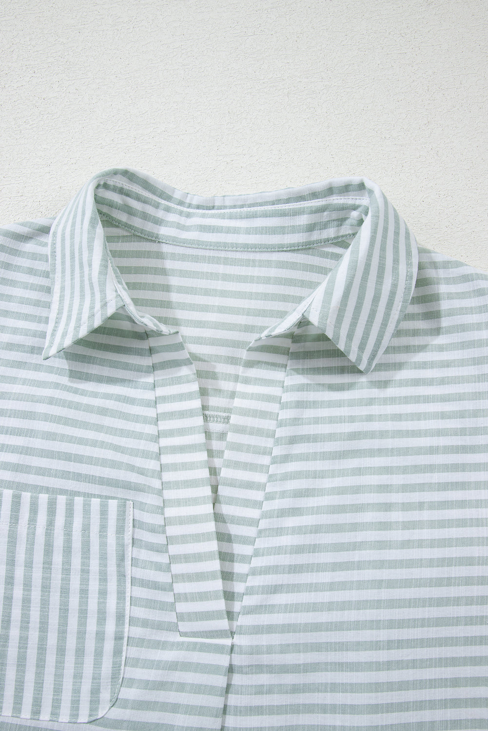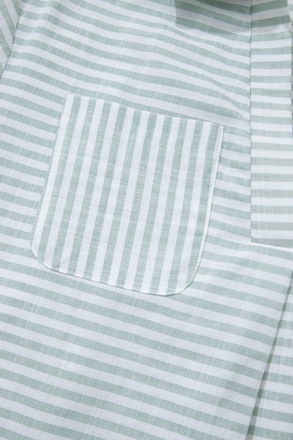 White Stripe Collared V Neck Chest Pocket Long Sleeve Beach Cover up